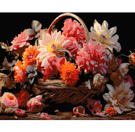 Картина за номерами Strateg Кошик з квітами на чорному фоні 40х50 см (AH1177-19)