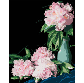 Картина за номерами Strateg Рожеві півонії на чорному фоні 40х50 см (AH1186-18)