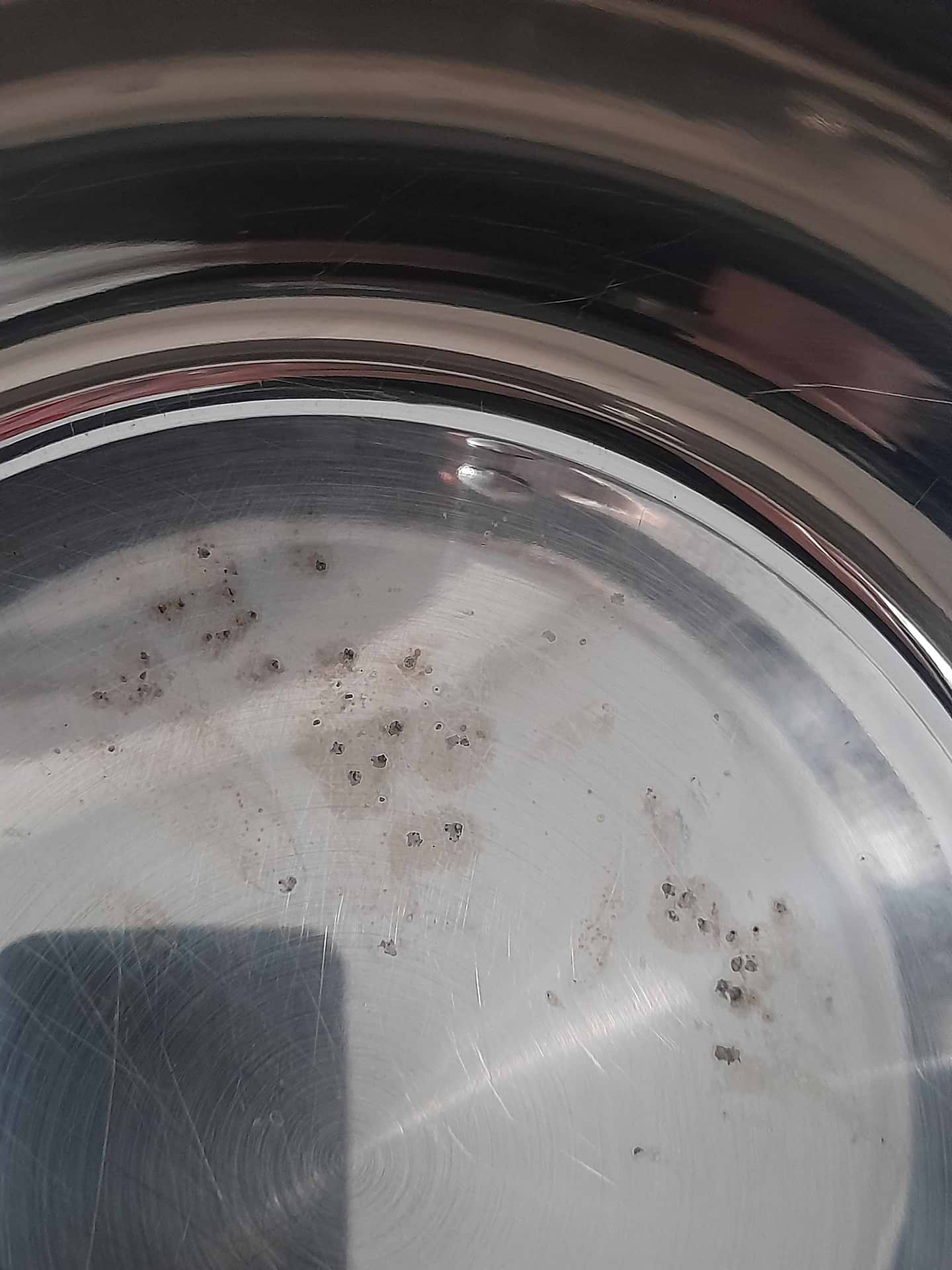 через месяц пошла ржавчина на дне, мыли только губкой, по фото видно
