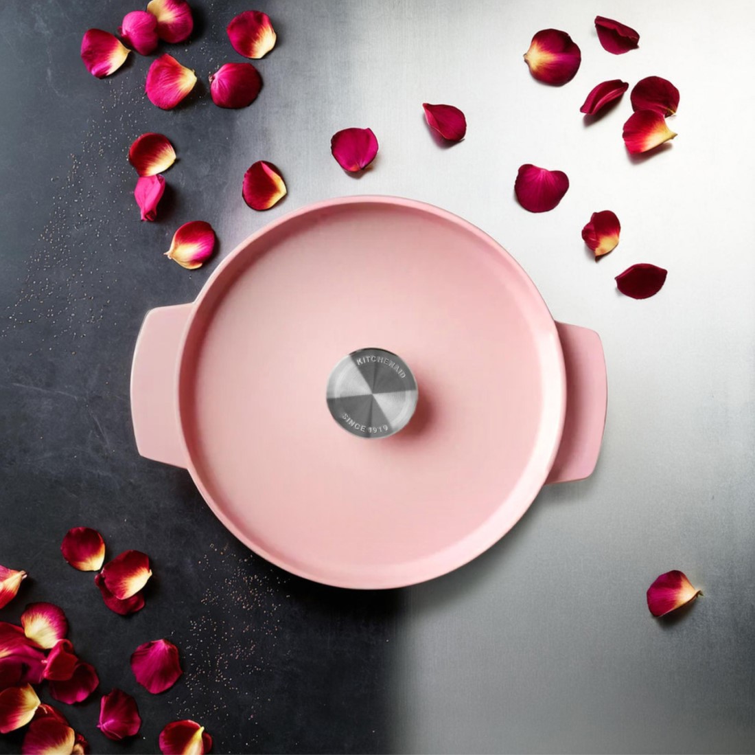 Європейський бренд KitchenAid славиться своєю високою якістю та інноваційними технологіями. Це стосується як складних пристроїв на кшталт міксерів і кухонних комбайнів, так і фірмового посуду. Дана модель, виготовлена з міцного чавуну, доповнена елементами з нержавіючої сталі та має емальоване покриття. Вона поєднує елегантний стиль із функціональністю, зберігаючи при цьому доступну ціну.