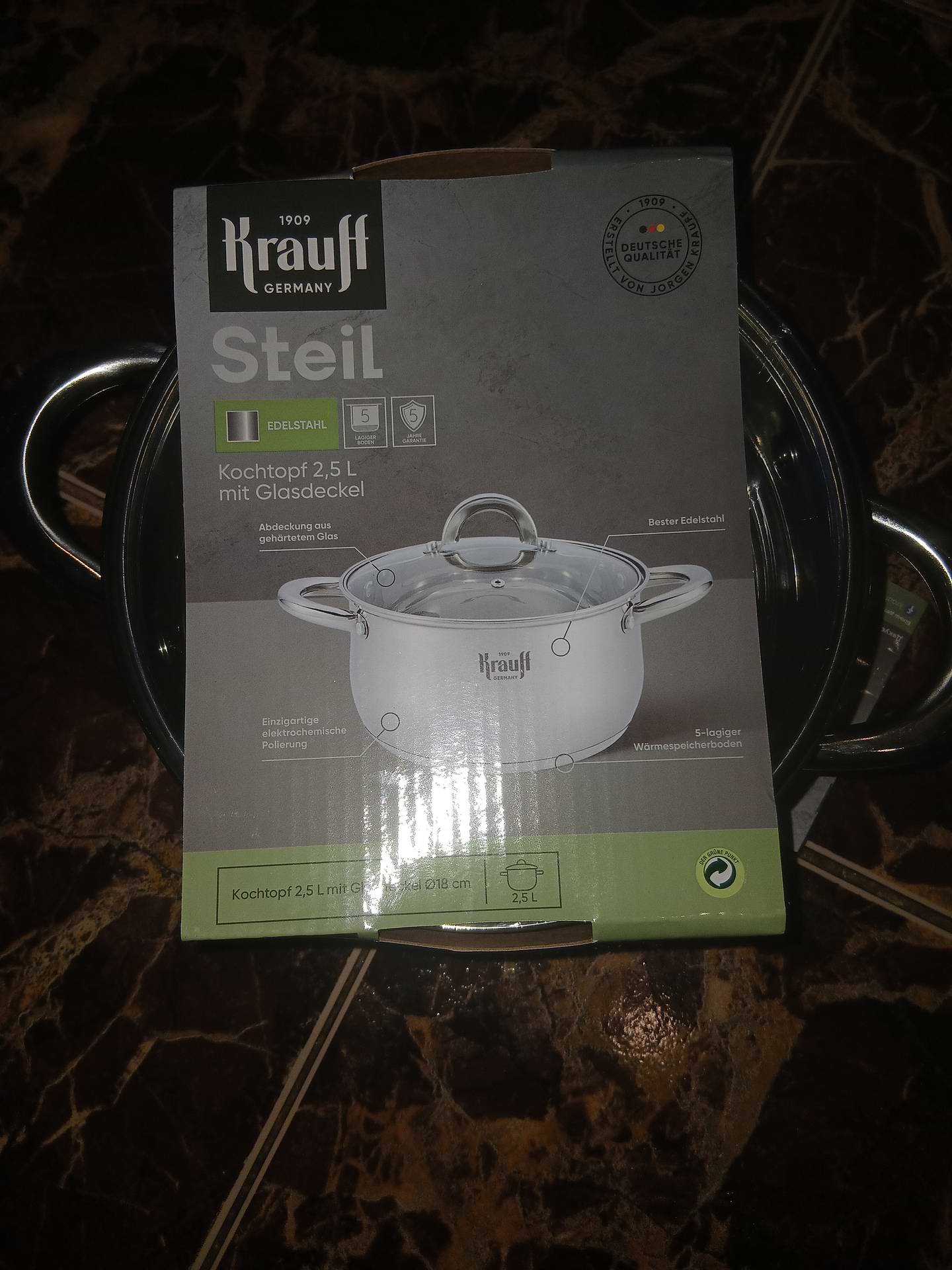 Каструля від Krauff сподобалась мені сучасним виглядом, конструкція виглядає надійно, ручки зручні, міцно приклепані. Дно подвійне, капсульне, щільно прилягає, не дає їжі підгорати. Матеріал сталі якісний, гарно полірований, не дряпається при помішуванні. Кришка сидить щільно, мені подобається, що скляна і видно, як готується їжа, має отвір для виходу пару.
