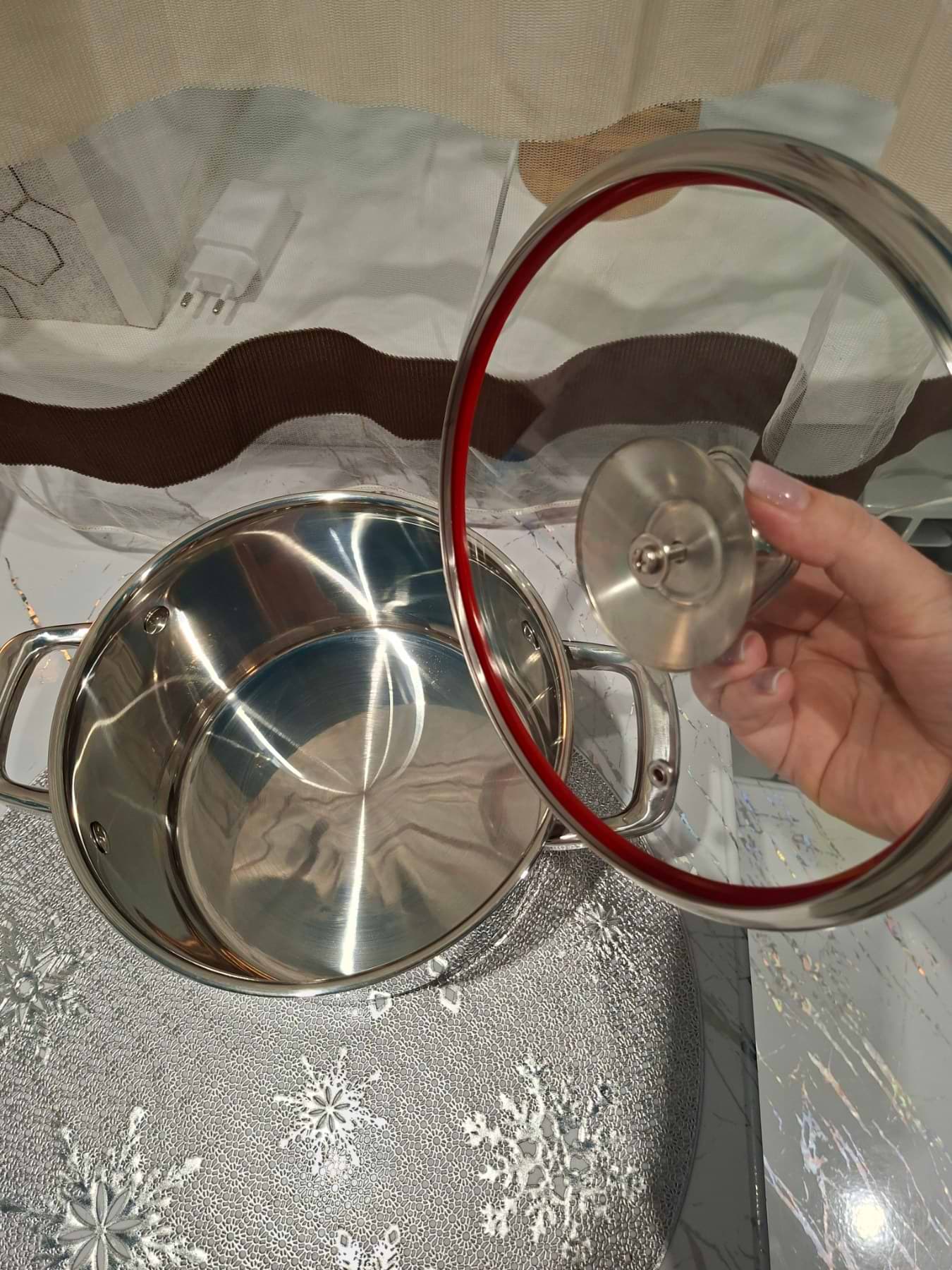 Каструля виготовлена з високоякісної нержавіючої сталі та дуже сучасно виглядає . Ще сподобалися зручні ручки , які не нагріваются до шаленої темпкратури . Я залишився задоволеним , всім рекомендую !