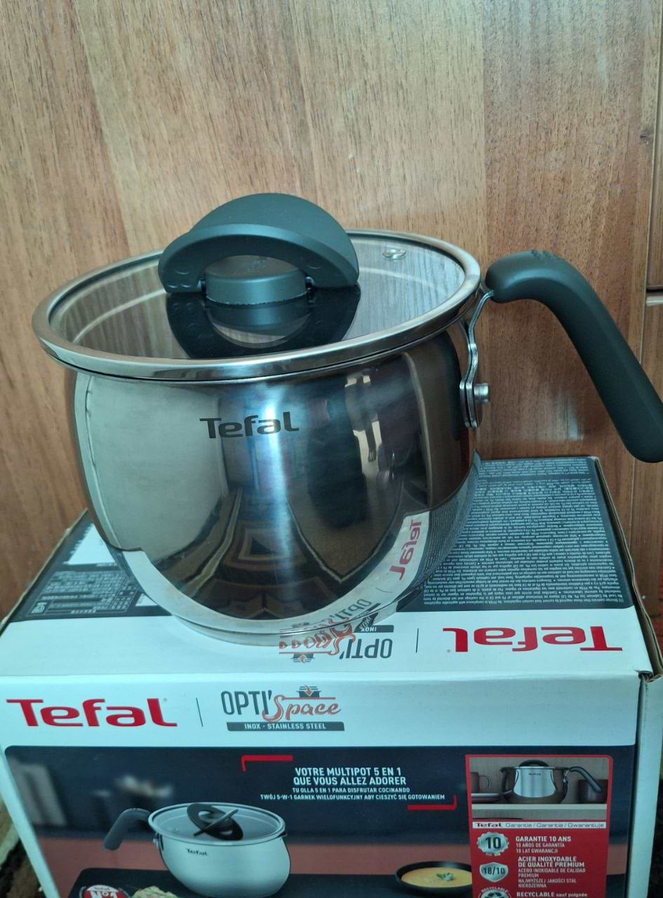 Чоловік подарував мені чудо каструлю - мультикаструлю Tefal. Каструлька має гарний розмір, антипригарне покриття. В ній відразу можна посмажити, а потім далі варити, тушкувати. Саме головне нічого не пригорає та виходить смачно. Зацінила подарунок чоловіка. Рекомендую.