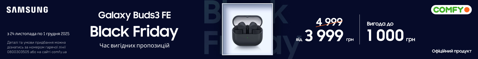 | Навушники вкладиші бездротові TWS Samsung Galaxy Buds3 FE Black (SM-R420NZKASEK) |