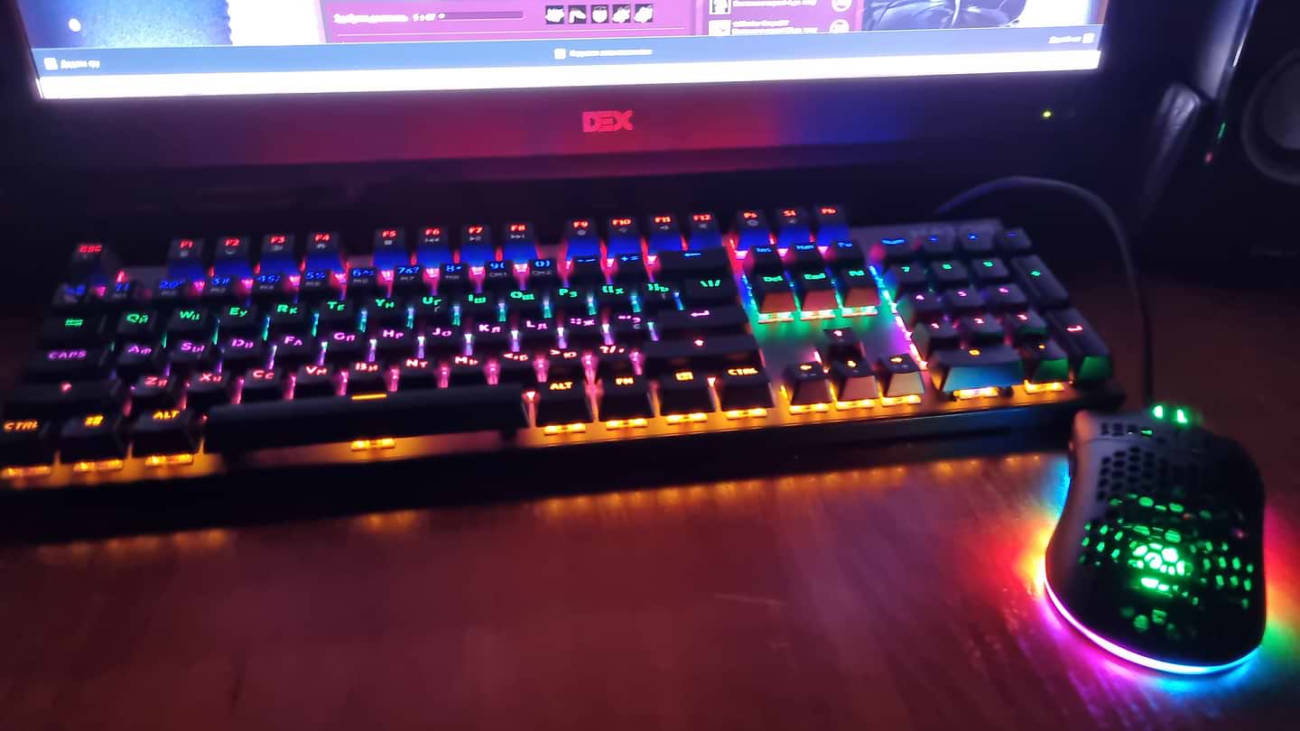 Син обрав цю клавіатуру через класну підсвітку. Справді гарні режими, досить тихо працює, як на механіку. Металізований корпус, через це важча за інші, тому не совгається по столу. Покупкою задоволені, тим більше ціна досить гарна для механіки