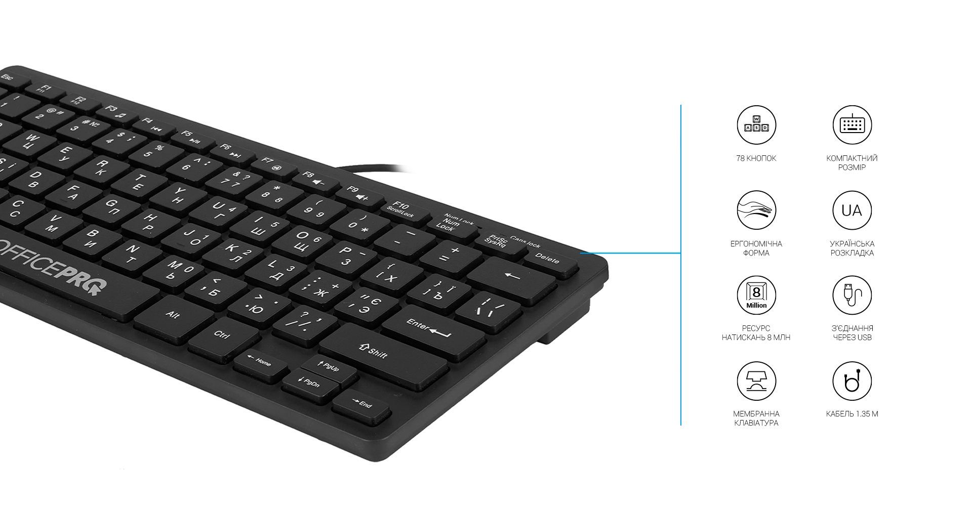 Опис Клавіатура дротова OfficePro SK240