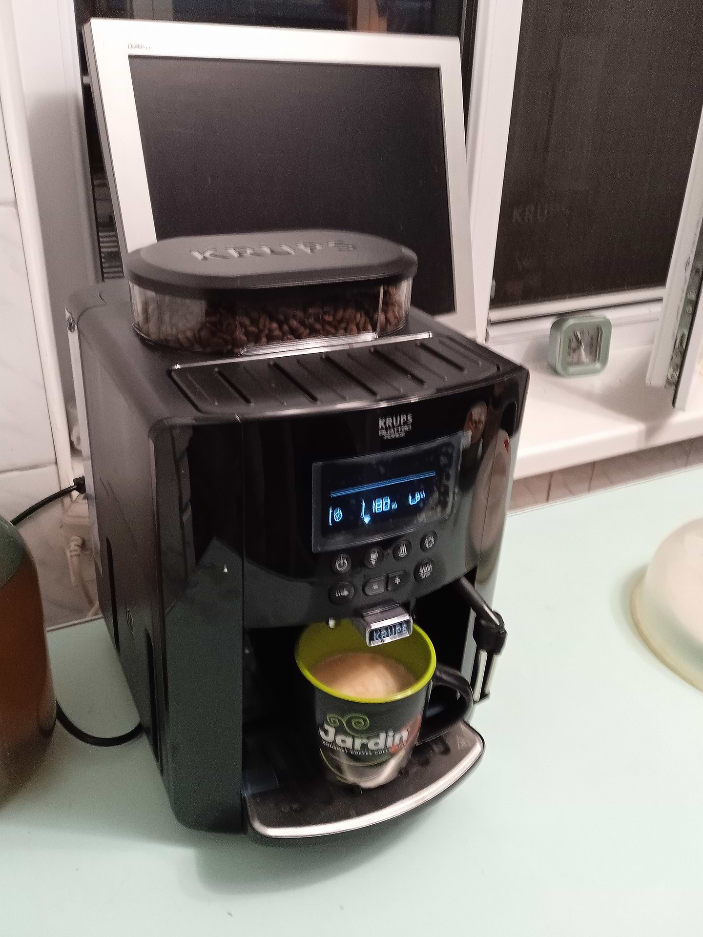 Дуже класна кавомашина.Стильний дизайн, проста в управлінні,зручне і зрозуміле меню. Тепер кожен ранок починається з чашечки смачної ,ароматної кави .Так як я люблю каву з молоком,капучинатор робить пишну пінку .Я дуже задоволена Krups,рекомендую !