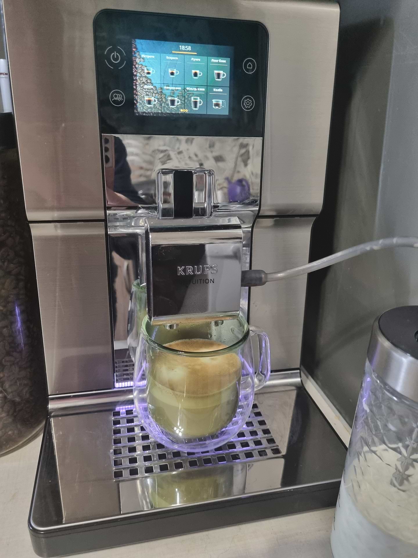 До покупки віднеслися відповідально. Розглядали безліч варіантів, але не Крупс. Поспілкувавшись з консультантом, який показав нам переваги саме цієї кавомашини, ми вирішили купувати. Це наша третя кавомашина ,і вона найкраща! Дуже тиха, виглядає стильно, компактна, але з великим баком для води, зрозуміле меню з великою кількістю напоїв . Донька любить молочні лате та капучіно, каже що навіть смачніші ніж в кав'ярні. Ми з чоловіком експерементуємо, робимо різні і все подобається! Чекаємо літа щоб робити кавові прохолодні напої.