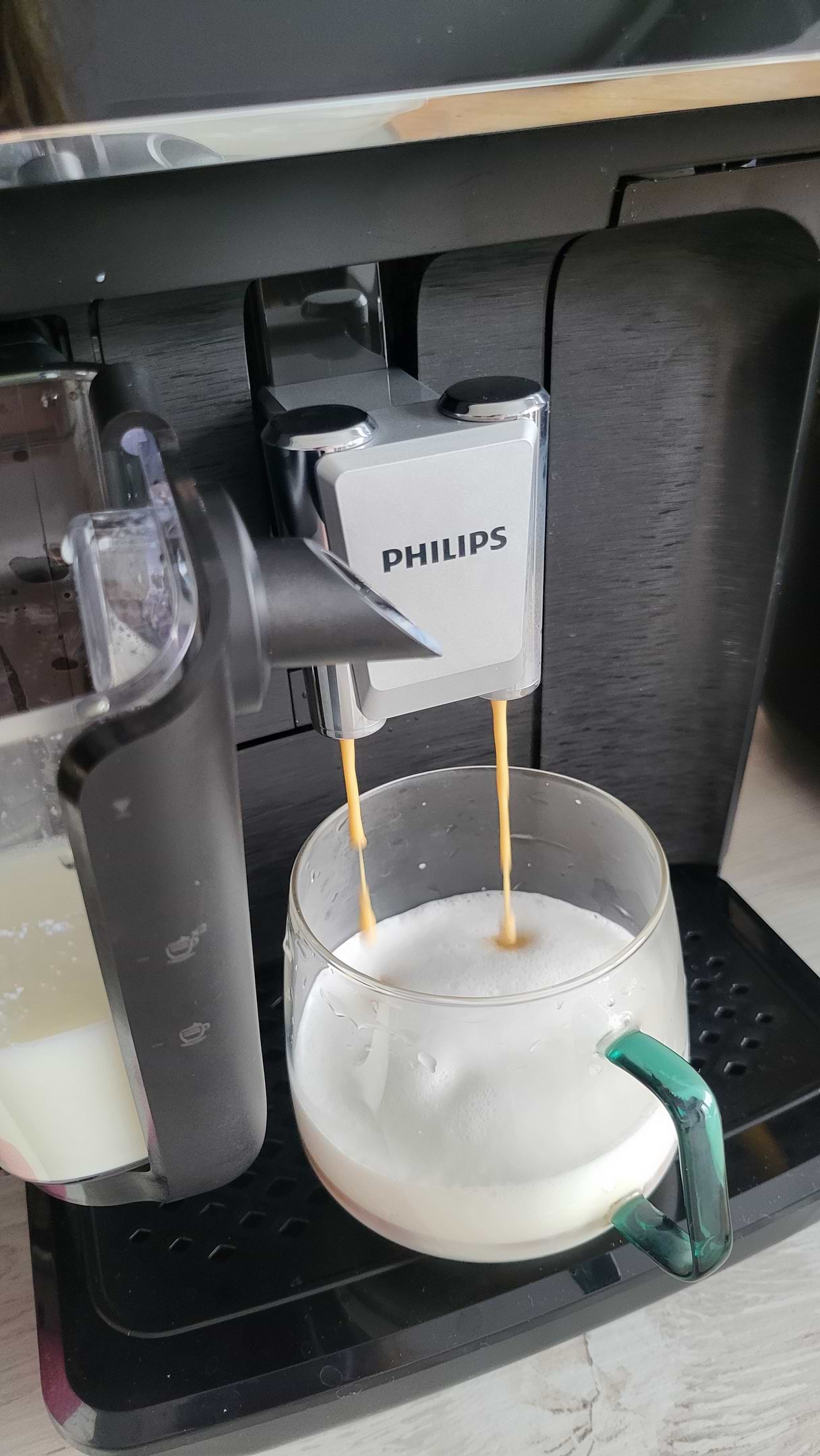 Молочна система LatteGo має всього 2 частини, без трубочок, і її можна промити за 10 секунд¹ під краном або в посудомийній машині.