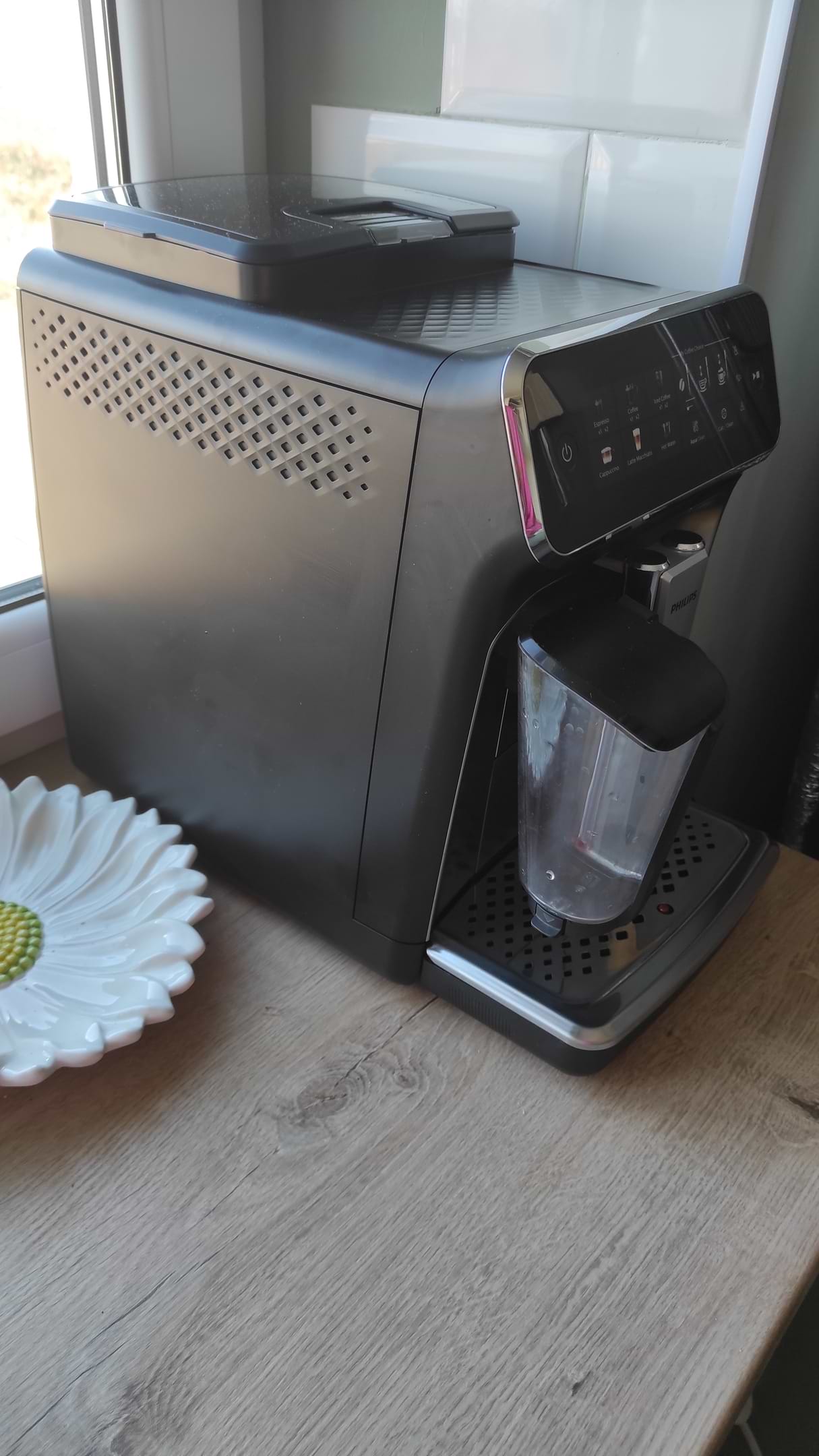 Дуже задоволені кавомашиною! Кавомашина залишила дуже позитивні враження. Особливо сподобалась система LatteGo, яка легко миється і добре збиває молоко. Зручний сенсорний дисплей дозволяє швидко обрати потрібний напій та налаштувати його під себе. Також компактний дизайн, що дуже зручно для моєї маленької кухні. Загалом це чудовий варіант для дому, якщо хочеться смачної кави без зайвих зусиль