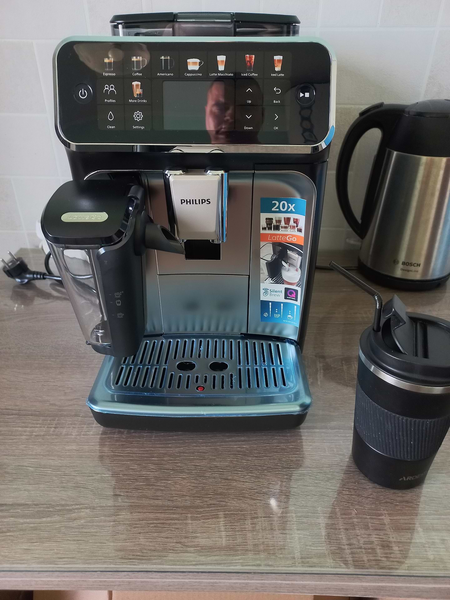 Це моя перша кавомашина Philiips EP5547/90 дизайн супер,тихо працюе і дуже легка в обслуговуванні. Дуже смачна кава виходить.