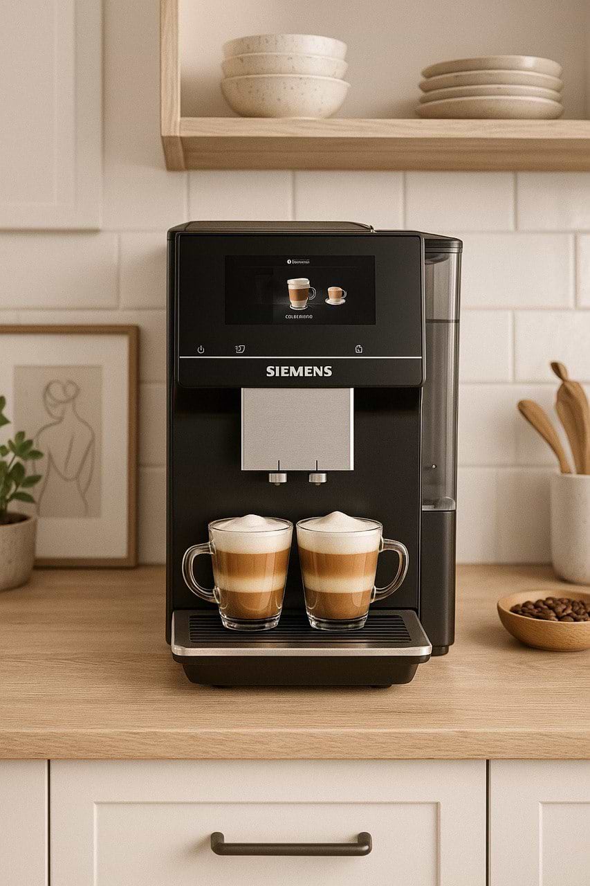 Кавомашина Siemens — це сучасне рішення для дому або офісу. Вона пропонує широкий вибір напоїв, зручне сенсорне керування та можливість персоналізації. Завдяки керамічному млинку та системі aromaDouble Shot, кава завжди насичена і без гіркоти. З даною кавомашиною кожен ранок — як маленьке свято. Вона не просто готує каву, вона розуміє, чого ти хочеш. Латте з ніжною пінкою, рістретто з характером або холодна кава в спекотний день — все одним дотиком. А ще — вона стильна, як гаджет з майбутнього.