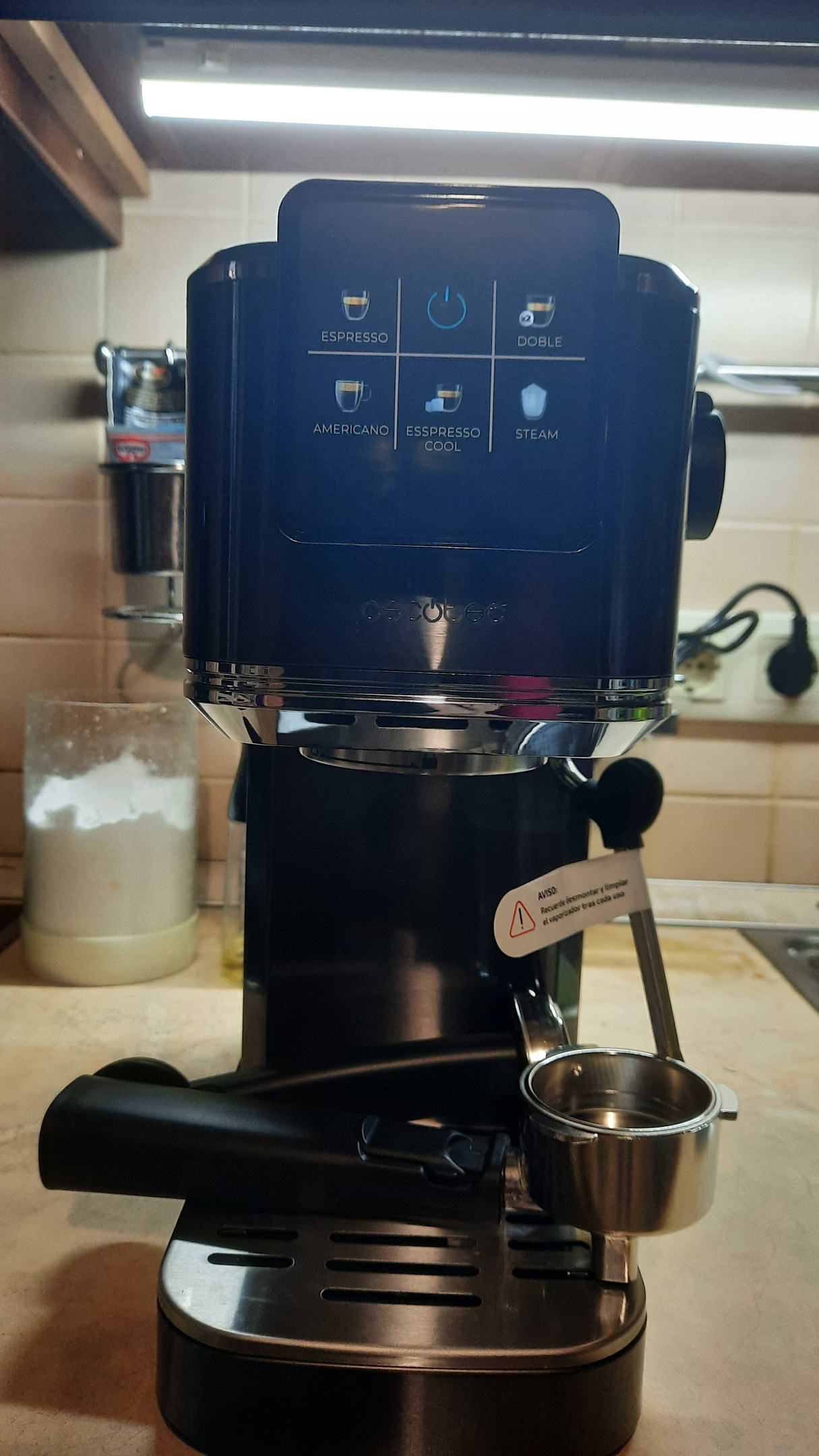 Дуже важливо стежити, щоб у резервуарі була вода. Одного разу ми про це забули, і кавоварка перестала давати каву, навіть після того, як долили воду: іконка в меню перестала миготіти, машина подирчала і все. Запрацювала тільки після того, як увімкнули пару і пропустили її секунд 10–15 (більше не можна, згідно з інструкцією).