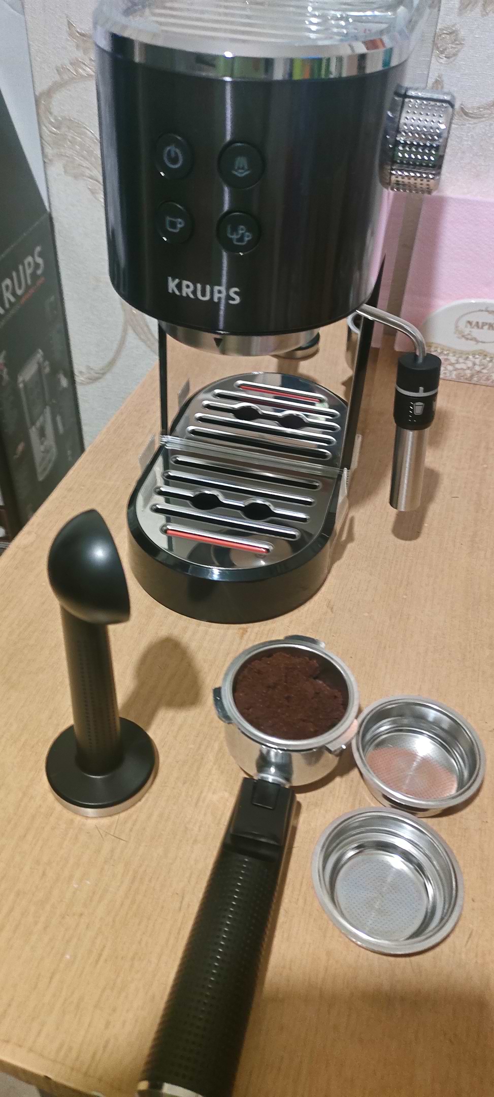 Чудова кавоварка, яка дає змогу самому зробити каву на свій смак. Має функцію ручного капучинатора, то при потребі можна зробити каву з молоком.