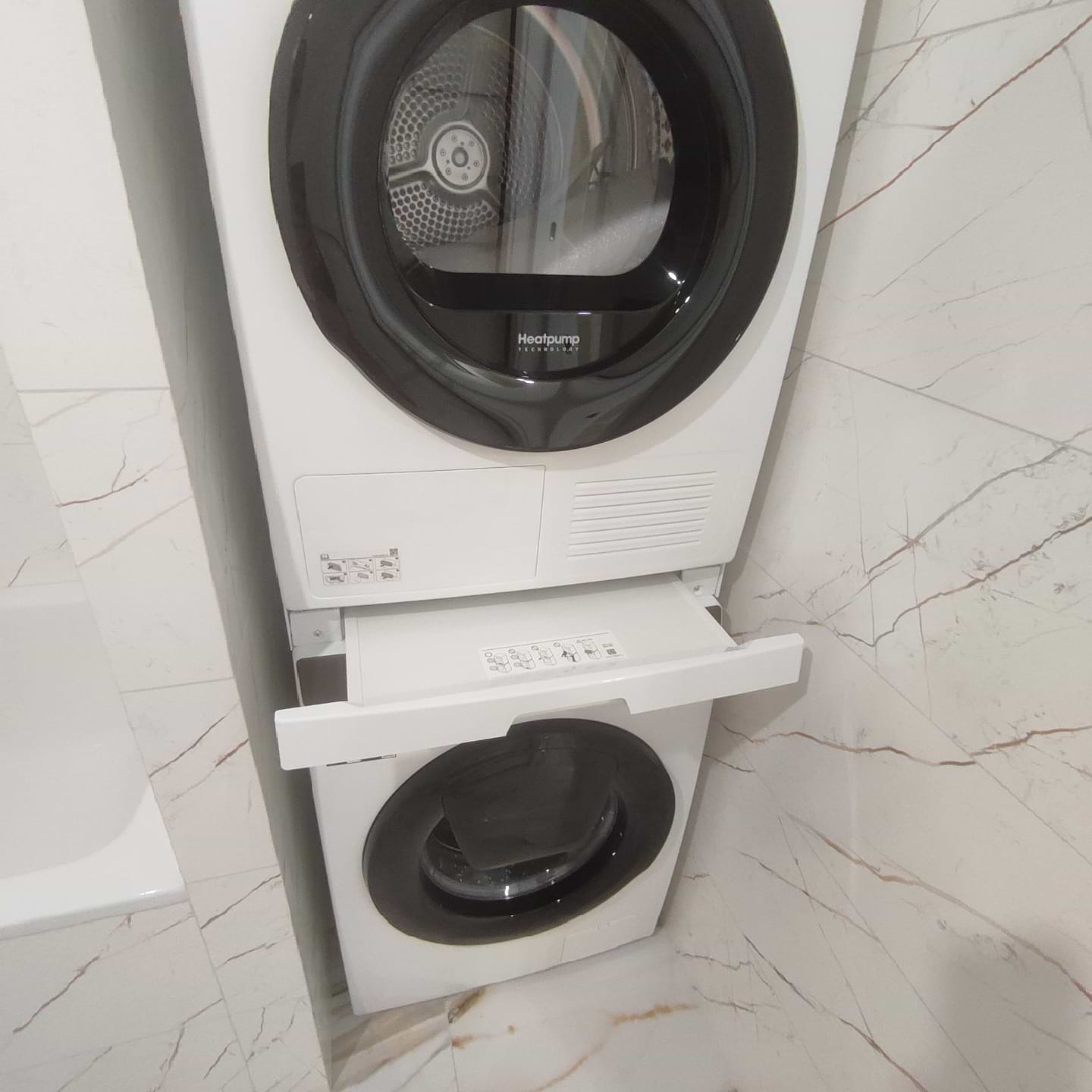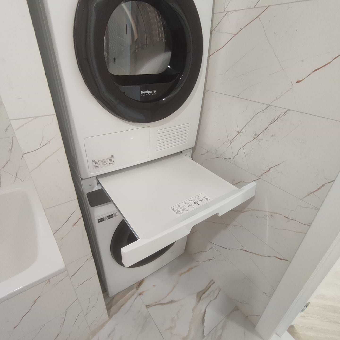 Чудова вставка. Купував до пральної та сушильної машини Samsung. Стало доволі гарно і без проблем. Коли машини стоять в колоні, а не поруч, багато місця економиться. Зручно перекладати речі з пральної в сушильну машину.