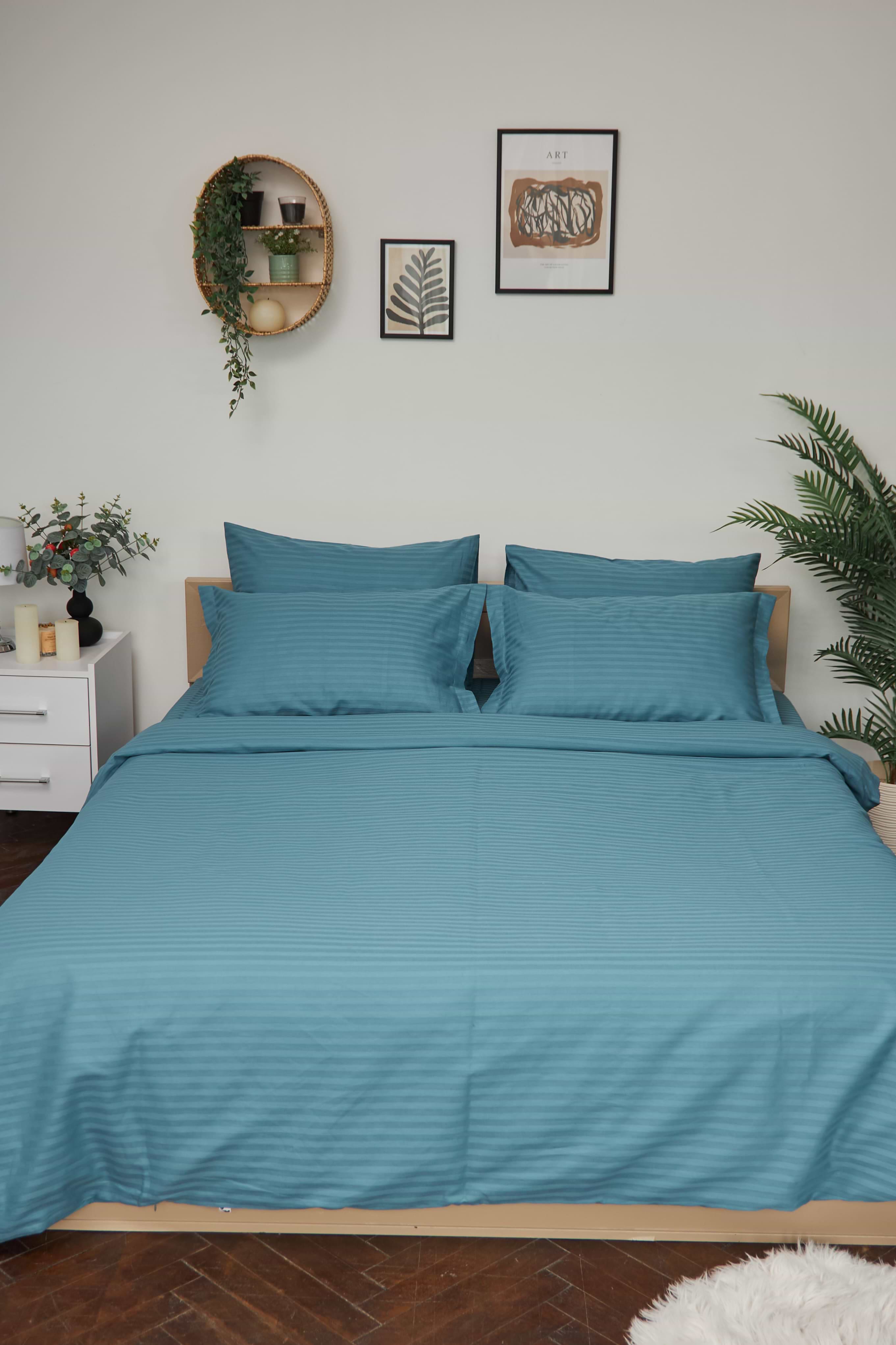 Комплект постільної білизни Moon&Star 200х220 см нав. 4х70х70 Stripe Green Satin Stripe (MS-820000594)