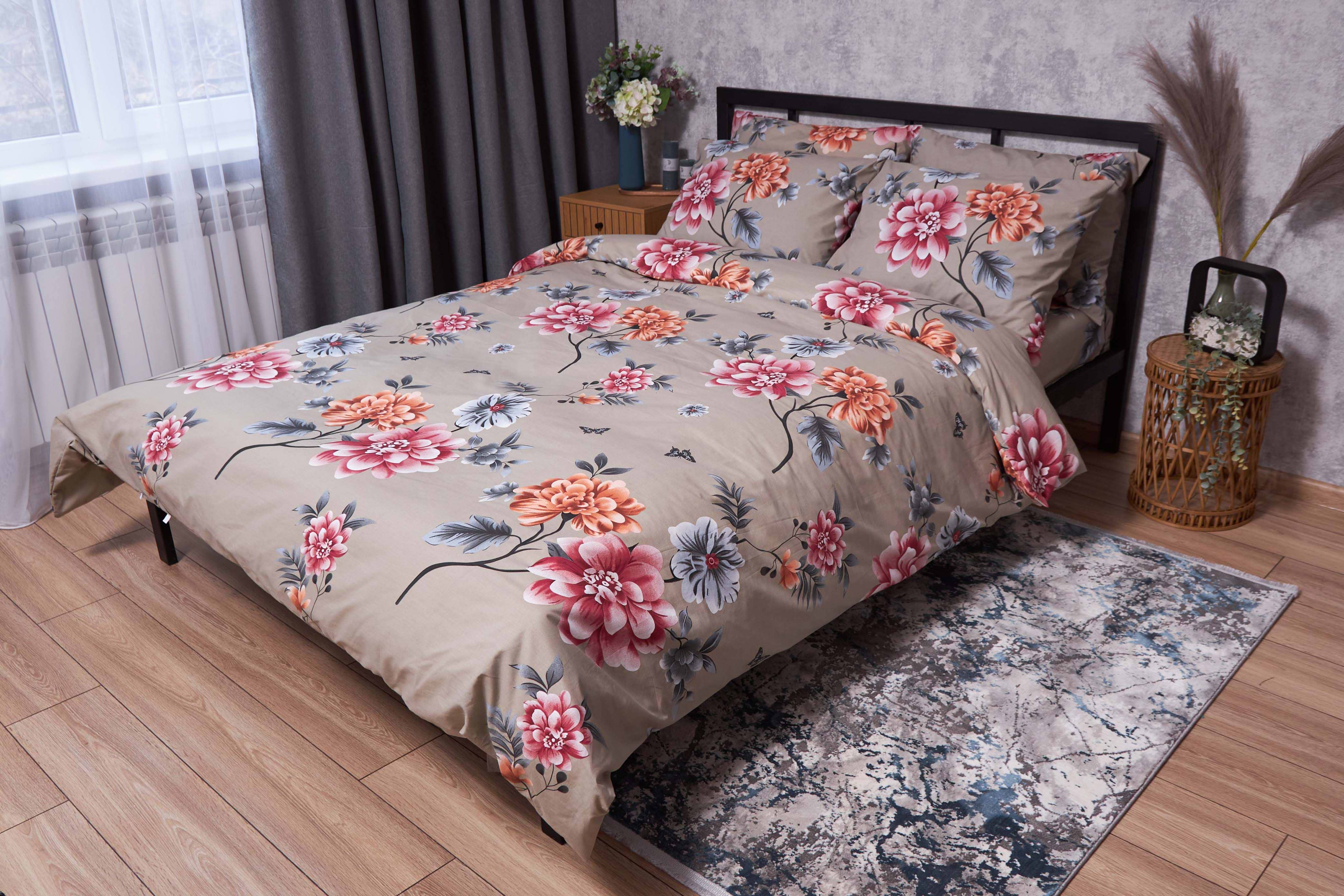 Комплект постільної білизни Moon&Star Бязь Gold Люкс Peony Brown160х220х2 нав. 4х70х70 (MS-820001912)
