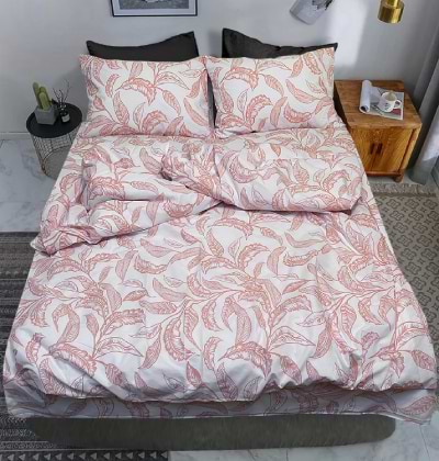 Все про Комплект постільної білизни Zastelli 40-1428 White Листя на білому 2х145х210 Рожевий (21208)