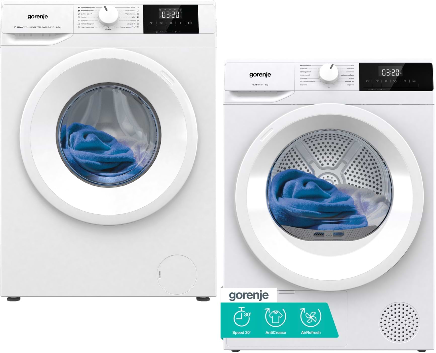 Комплект техніки Gorenje Пральна машина з фронтальним завантаженням + Сушильна машина Gorenje WNGPI61SBS/UA + D2HNE7E/UA