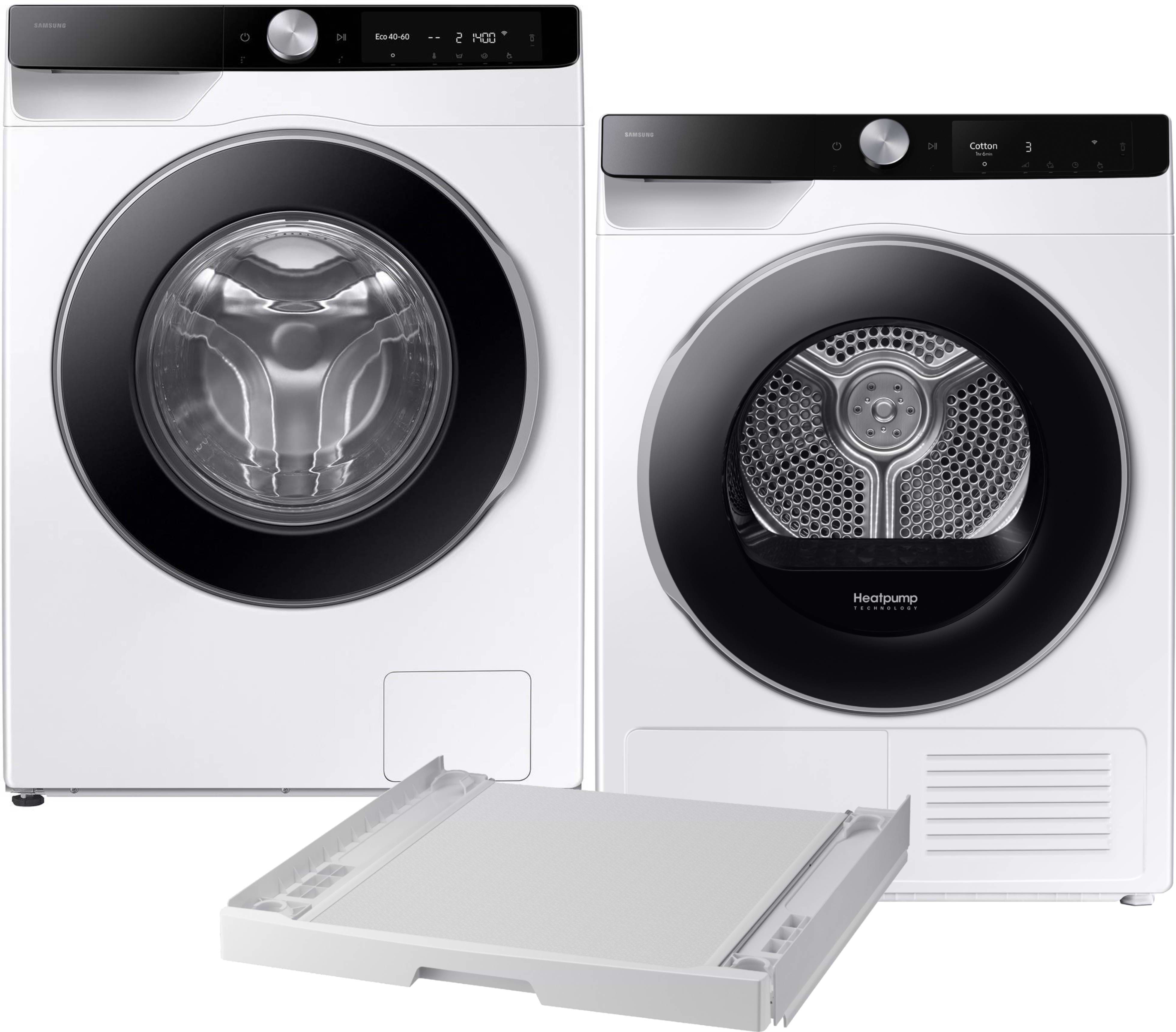Комплект техніки Samsung Пральна машина з фронтальним завантаженням + Сушильна машина + Комплект кріплень для встановлення в колону Samsung WW10FG6U3ELKUA + DV90T6240LK/UA + SKK-UDW