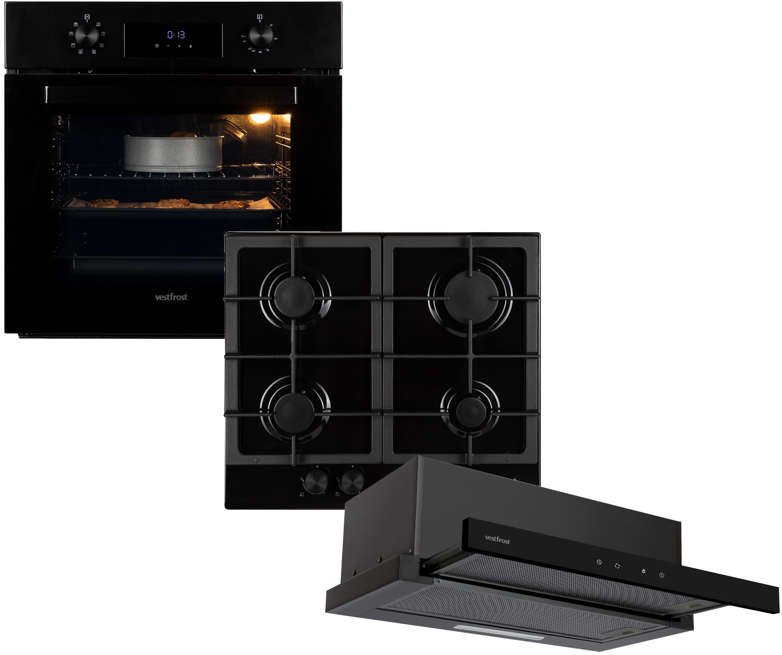 Комплект техніки Vestfrost Духова шафа + Варильна поверхня + Витяжка вбудована Vestfrost OBE869DT + GHBE241CI + HTL603BGS
