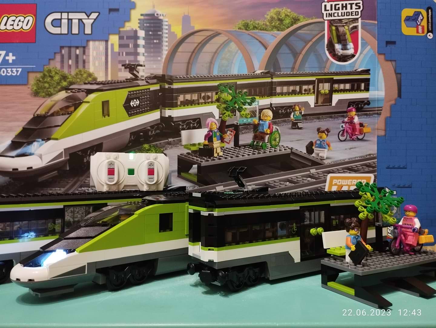 Оригінальний чудовий лего поїзд. Дитина в захваті. Через 1.5 доставили в магазин. Збиралали його десь годин 7 усього. Батарейок в комплекті немає, тож треба купити якісні 6 шт розміру ААА в поїзд і ще 3 ААА в пульт.