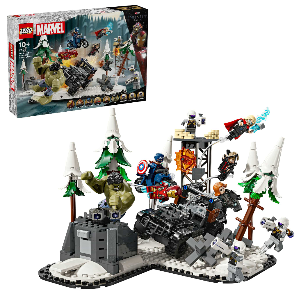 Потіште шанувальників Халка, Тора, Чорної Вдови, Капітана Америка та Соколиного Ока цим гостросюжетним багатомодульним набором LEGO® Marvel.
