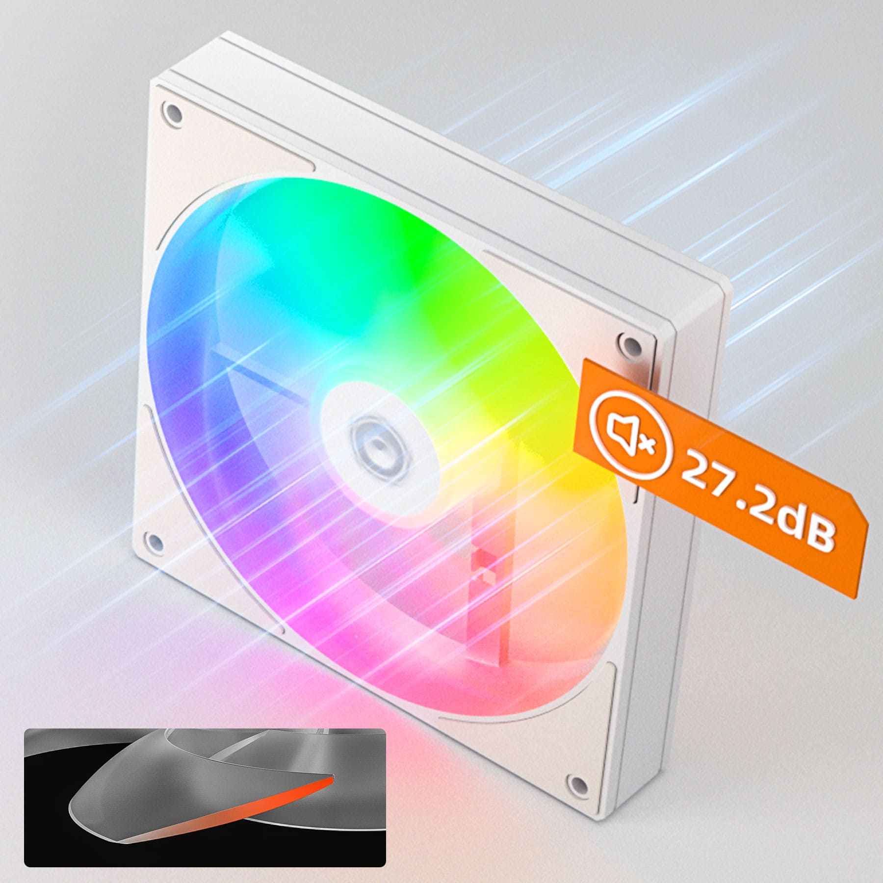 Спеціальна форма лопатей забезпечує мінімальний шум, лише 27.2 дБ при 2000 обертах. Така технологія робить цей вентилятор одним з найкращих у своєму класі, поєднуючи високу продуктивність із комфортним рівнем шуму..