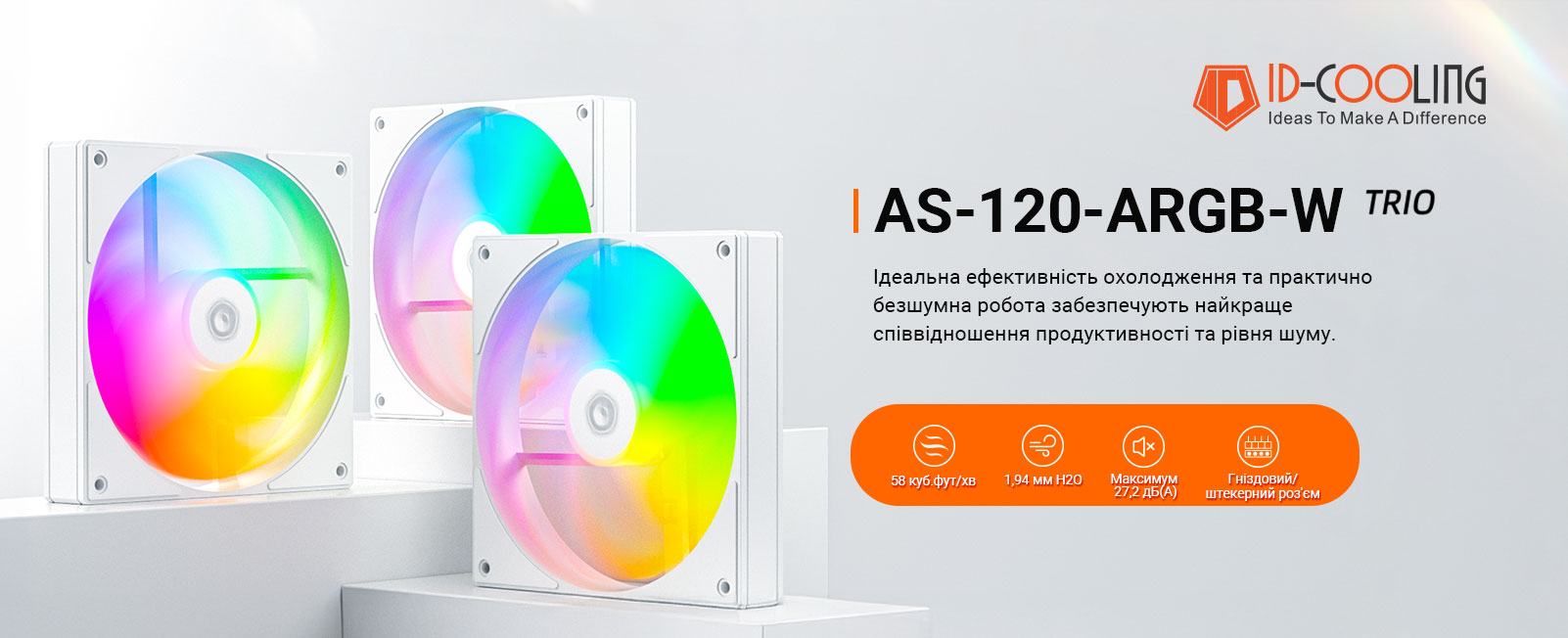 Опис Корпусний вентилятор ID-Cooling AS-120-ARGB-W Trio