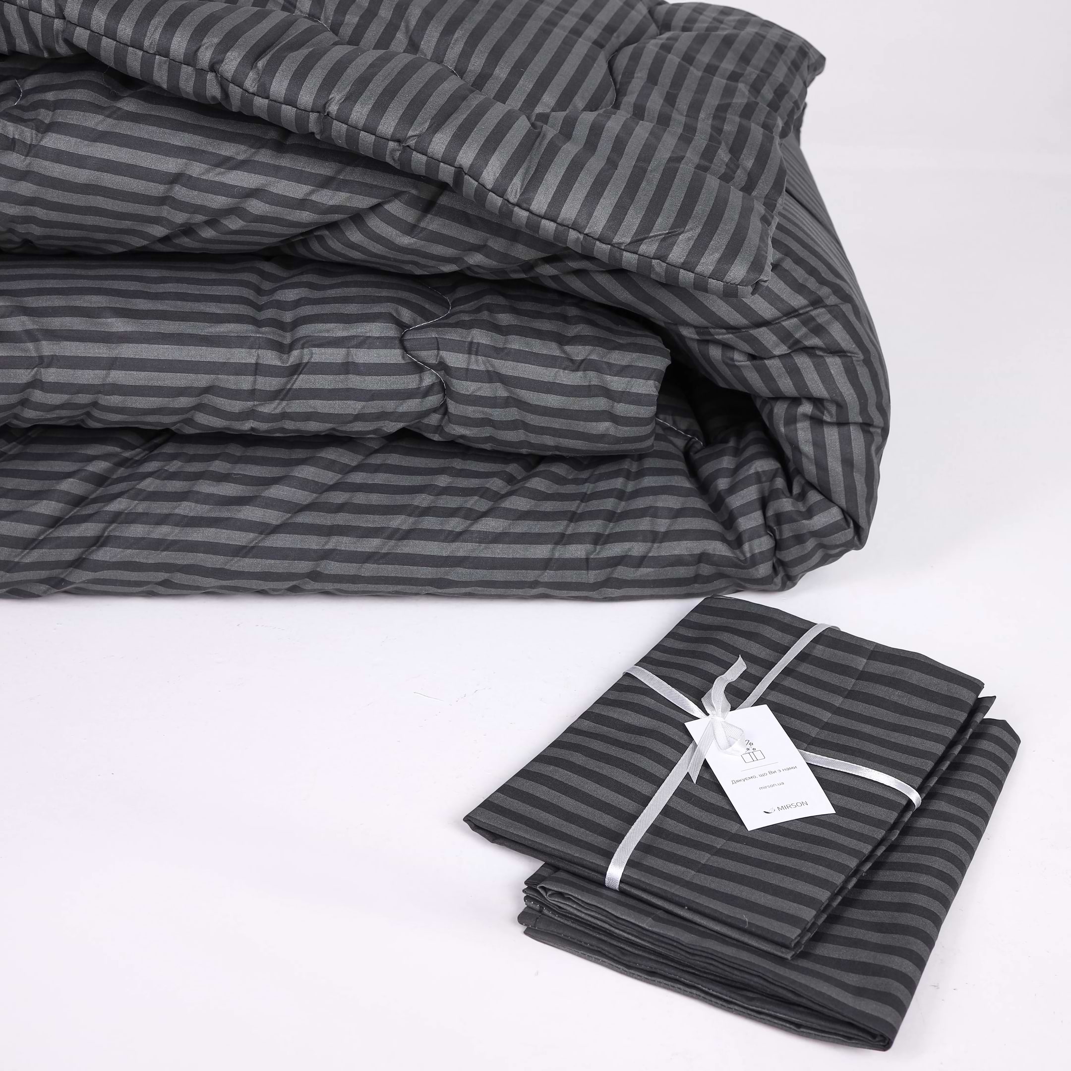 Ковдра літня полуторна MirSon антиалергенна №148 Сolor Fun Line 17-0611 Stripe Black Thinsulate 140х205 нав. 2 шт. (2200010854114)