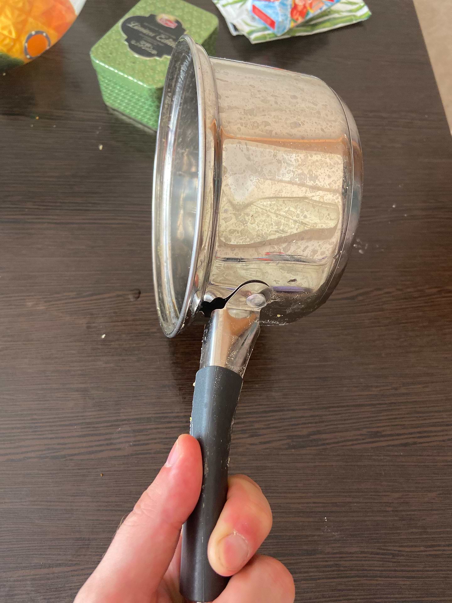 Ковшик чудовий, маленький та акуратненький. Дуже зручна ручка,яка не гріється і ручка на кришці