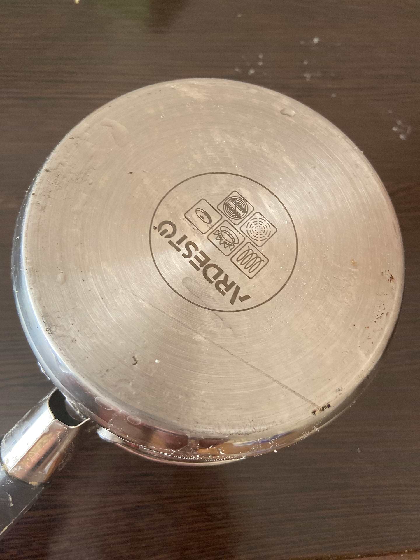 Купували в Comfy . Багато разів пригорала каша в ковші, та все відмивалось)) ніде не поржавіло, ручка резинова не нагрівається. Гарна річ!
