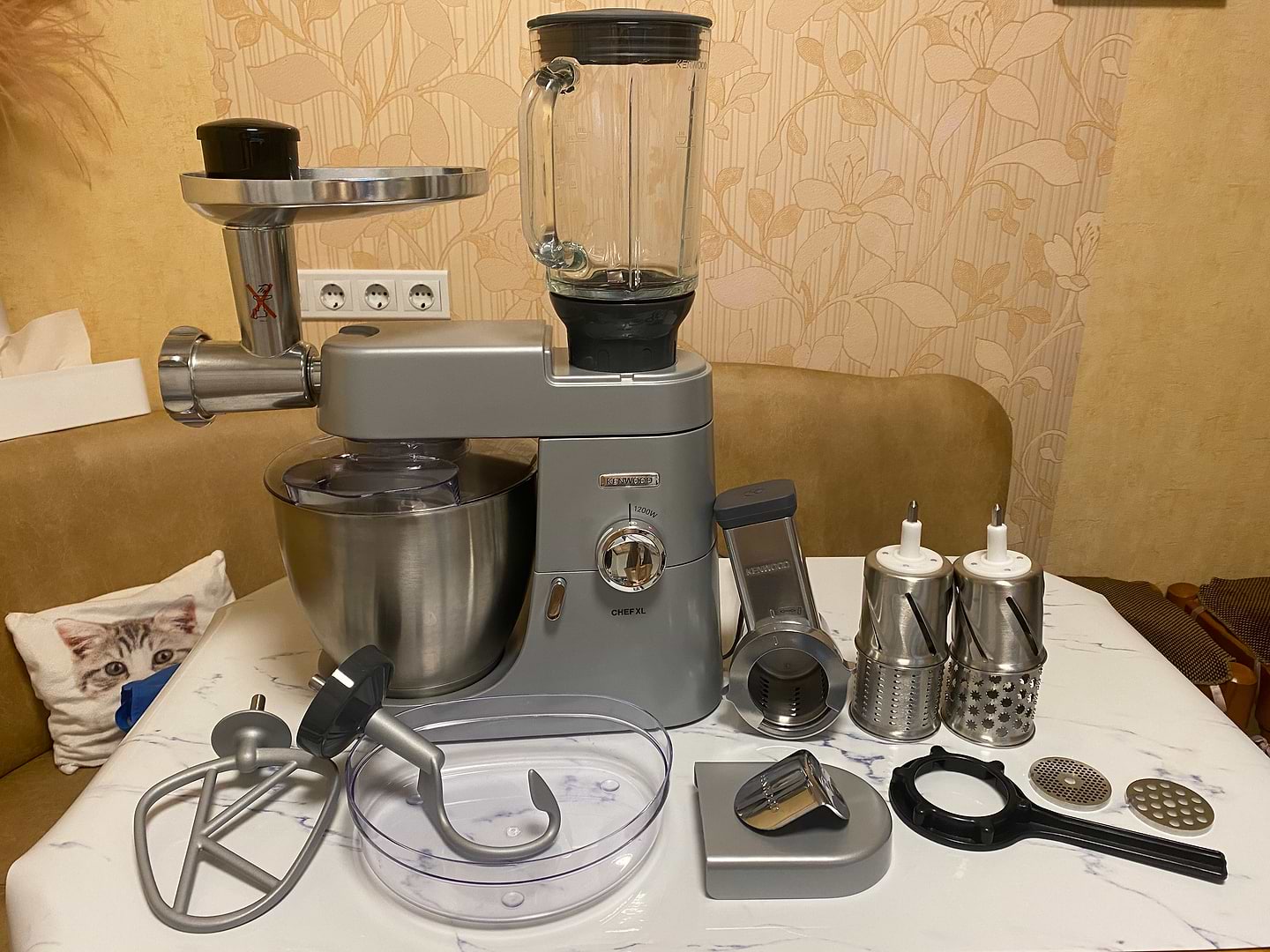 Комбайн просто пушка, працює тихо, мало споживає електрики - що на час блекаутів дуже добре, можно від станції включати и швидко замісити тісто. Насадки можно докуповувати. Дуже зручно що все і однієму комбайні знаходиться.