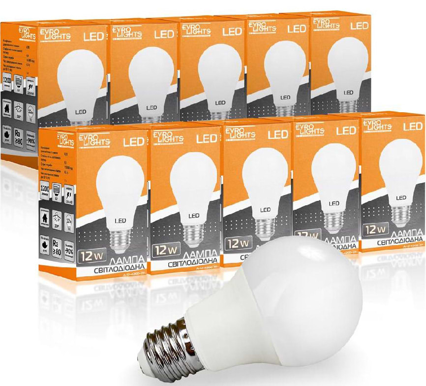 Все про Лампочка світлодіодна EVROLIGHT 12Вт 4200К A-12-4200-27 Е27 10 шт. (000058947)