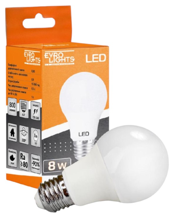 Все про Лампочка світлодіодна EVROLIGHT 8Вт 4200К A-8-4200-27 Е27 (000058114)