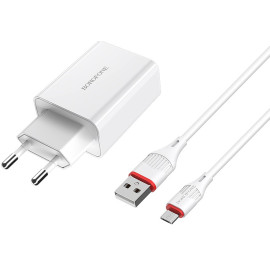 Мережевий зарядний пристрій BOROFONE BA21A Long journey single port QC3.0 charger set Micro 18W White (6931474702470)