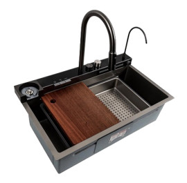 Мийка кухонна Platinum 75x46D PVD сіра Handmade "ВОДОСПАД"