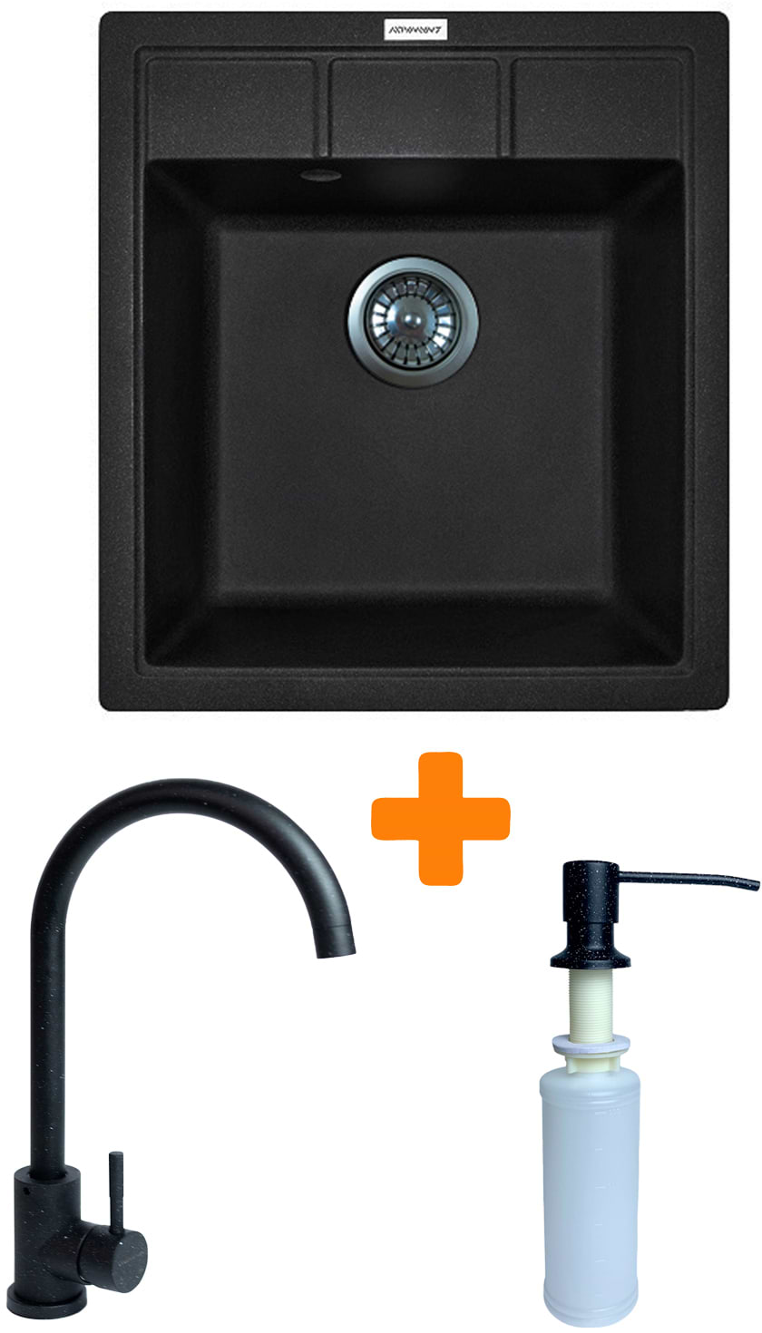 Мийка кухонна+змішувач+дозатор Adamant Brick чорний (4824296209703)
