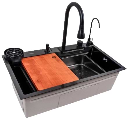 Мийка кухонна+змішувач+дозатор VALESO 75x46F Чорна PVD Handmade Водоспад Fly rain
