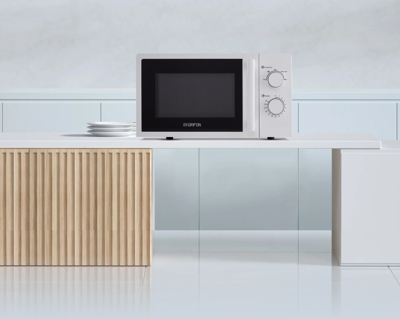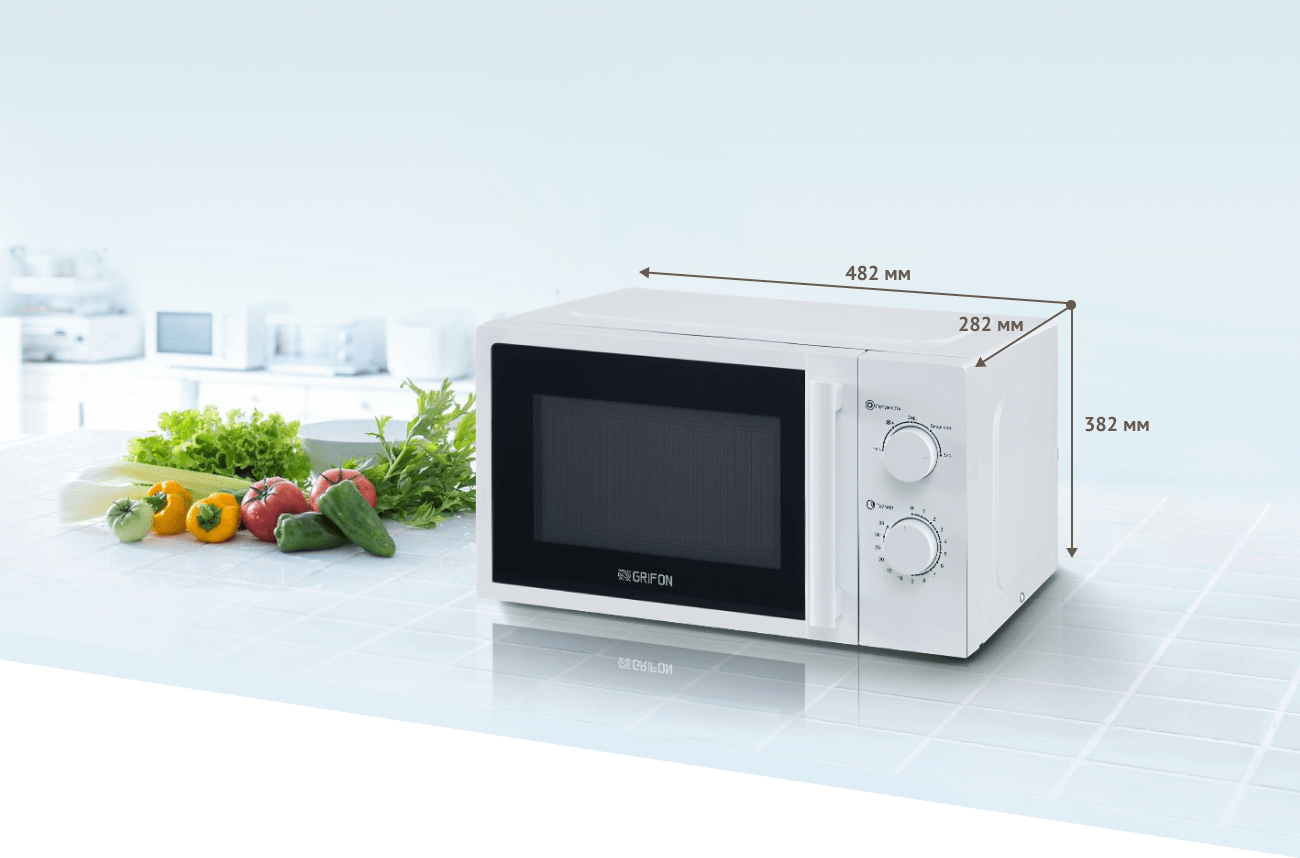 Стильна та компактна, мікрохвильова піч Grifon GR20FM0116W завжди буде доречною на будь-якій кухні