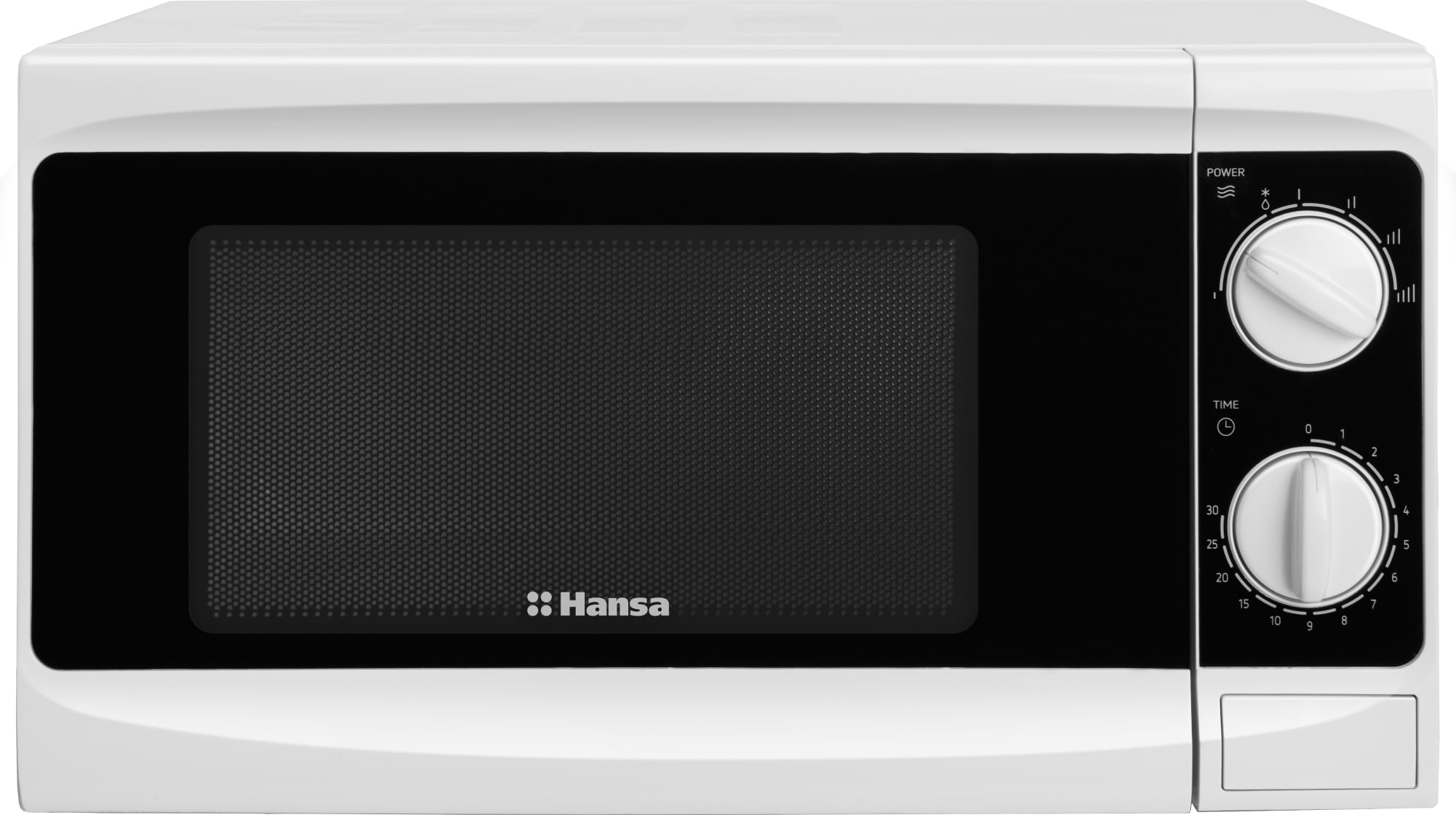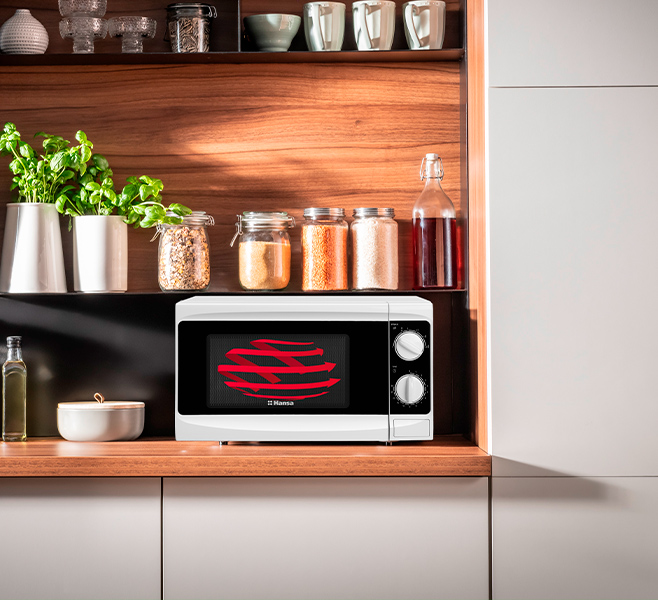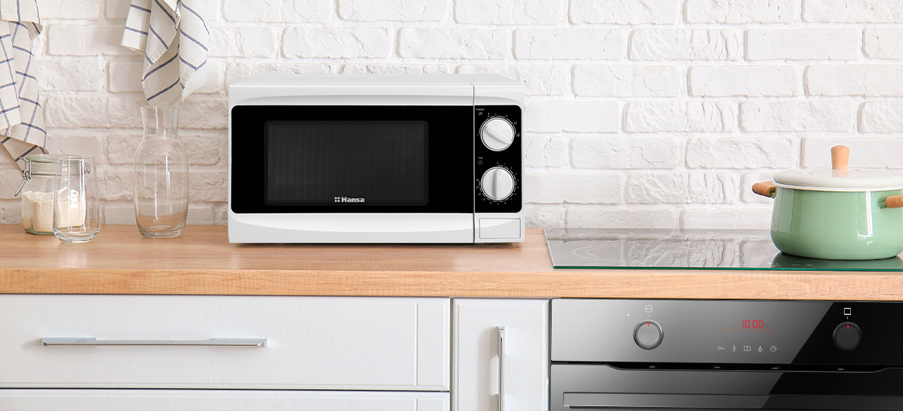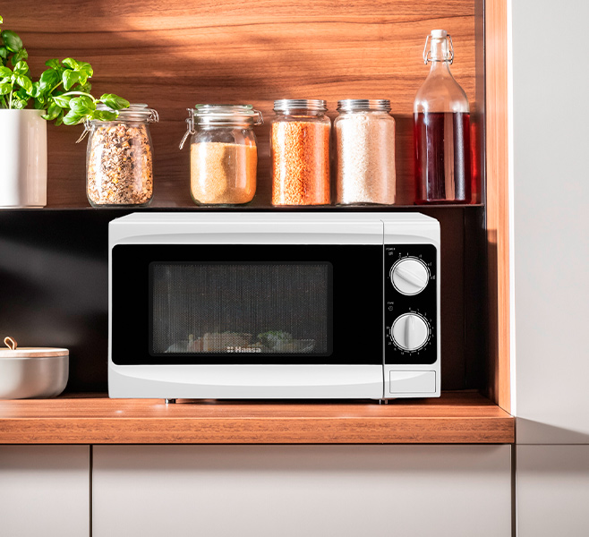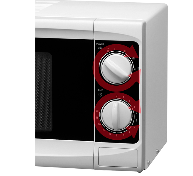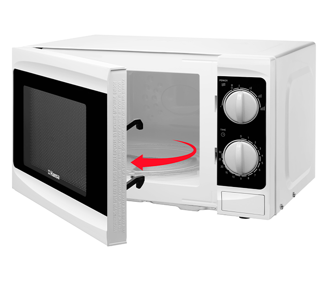 Мікрохвильова піч Hansa AMG17M70VH оснащена двома практичними поворотними ручками. З ними ви можете легко встановити час роботи та не хвилюватися, що натиснете якусь не ту кнопку.