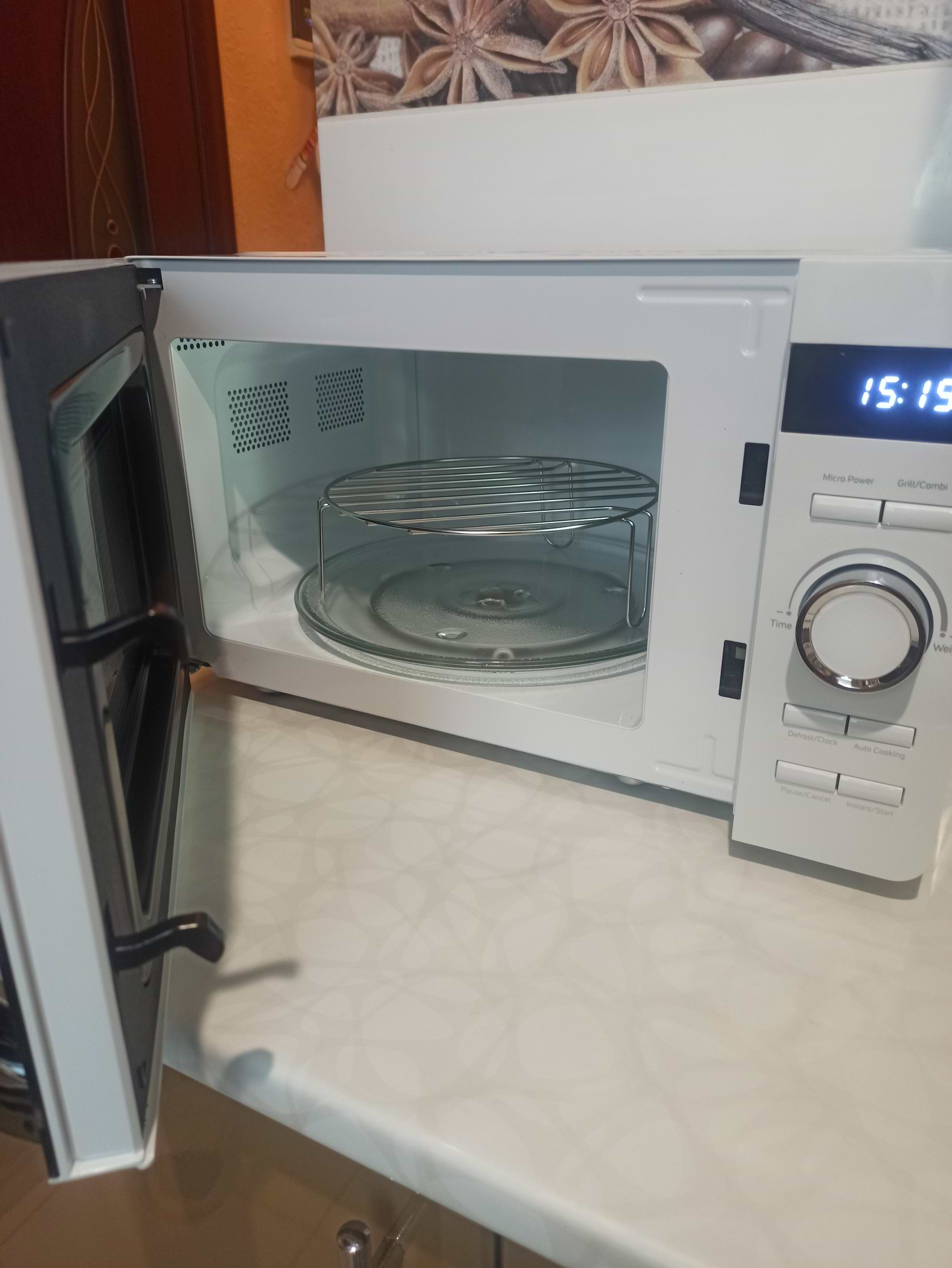 Чудова за дизайном микрохвильовка.Якраз під наш дизайн.Працює добре гриль дієвий,але ще не сильно з ним розібрались.Поки все влаштовує.По ходу п'єси підкинемо інформації.