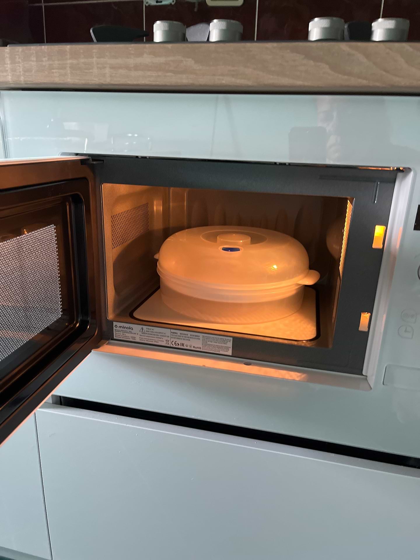 Підбирала вбудовану мікрохвильову піч на кухню, саме ця сподобалась дизайном та ціною. Що стосується її роботи - я повністю задоволена. Мікрохвильовка має біокерамічне покриття, завдяки якому в середині на стінках не накопичується жир, достатньо протерти серветкою, щоб зберігати мікрохвильовку чистою. Розігрів здійснюється без поворотної частини, це дійсно дуже зручно, адже можна розігрівати абсолютно будь-що, без прив'язки до форми чи розміру. Задоволена на 100 зі 100%