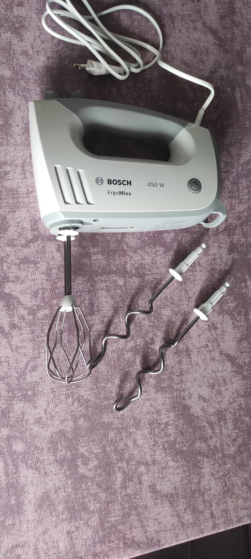 Міксер BOSCH ErgoMixx 450 Watt (MFQ36400) - універсальний, багатофункціональний міксер, незамінний помічник справжній господині на кухні. Він здатен збивати крема, бісквіти, тісто і ... легко, швидко (коли потрібно повільно) і головне вчасно, все "під рукою".