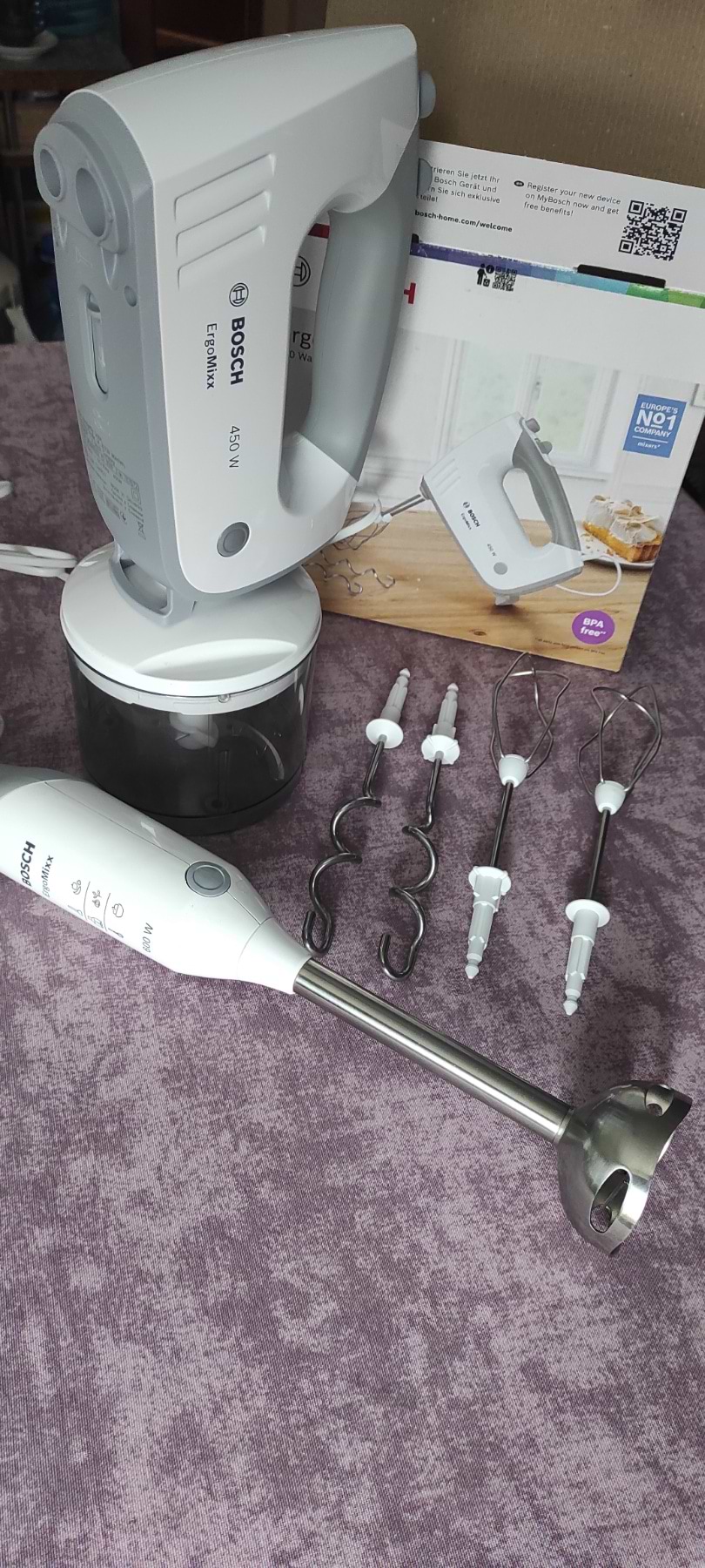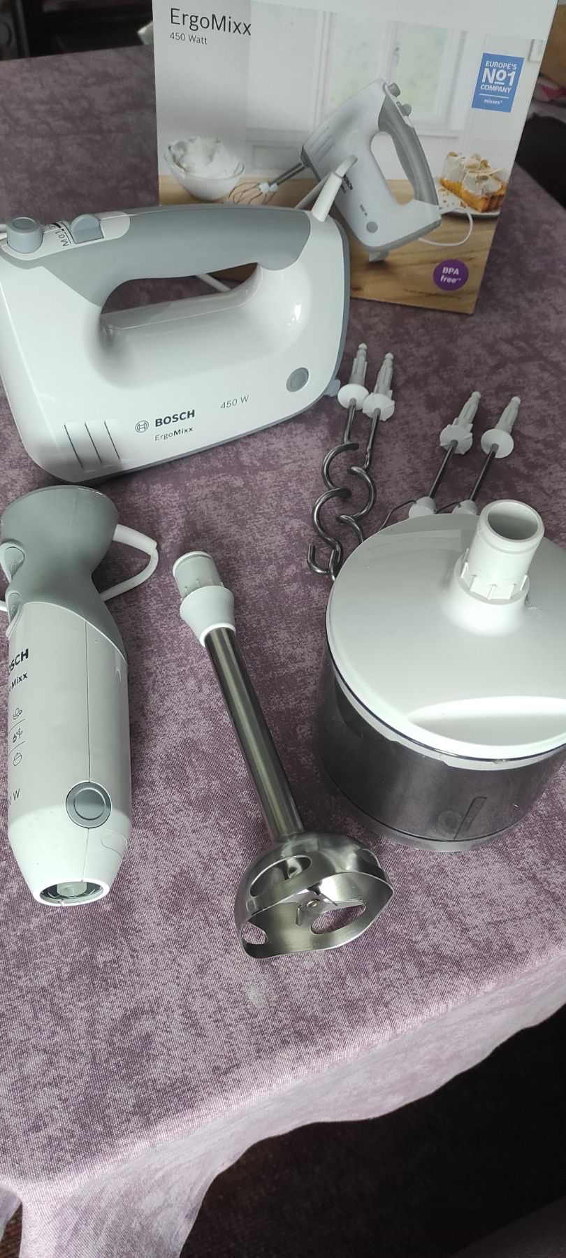 Але на це ще не все. Фірма Bosch думає про людей і наперед. В кого є блендер, як у мене, також може використовувати насадки сумісно із даним міксером, все підходить і працює. Потужності вистачає для господині, яка любить радувати свою сім'ю смаколиками.