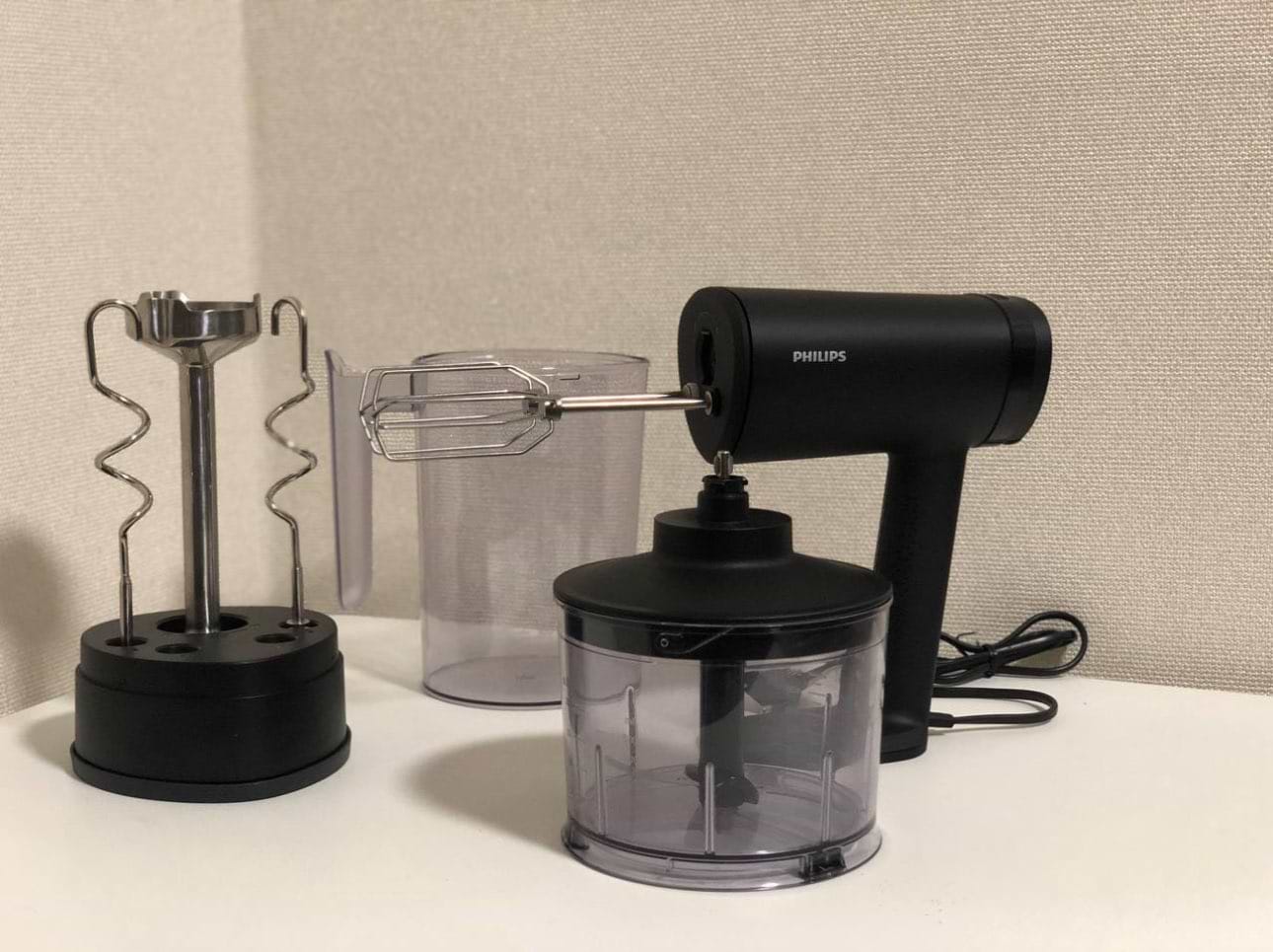 Міксер зручно тримати в руці, рука не втомлюється, потужний, білки взбиває швидко і якісно. Зручно, що окрім вінчиків і гаків для тіста, є ще і ніжка для подрібнення, що робить його дуже функціональним. Рекомендую.