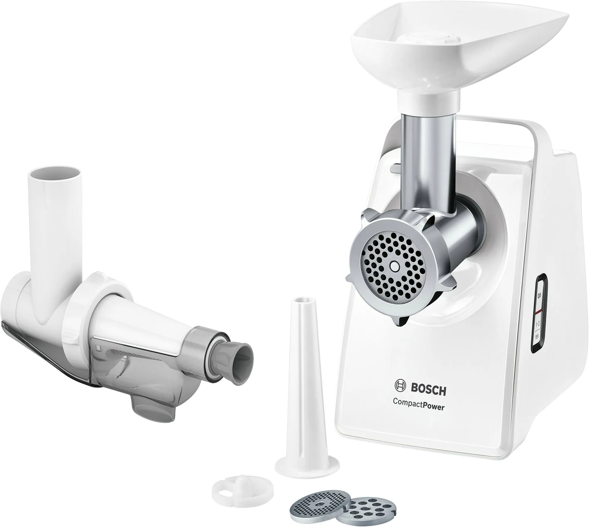 Завдяки трьом різним дискам Ви можете перемолоти будь-які продукти. Наприклад, завдяки диску з отвором 2,7 мм Ви можете перемолоти варену курятину, свинину, яловичину, варену печінку та рибу на супи. Перфорований диск із 4 мм з легкістю подрібнить свинину та яловичину на паштет і сервелат, а найбільший диск (8 мм) допоможе обробити смажену свинину на гуляш або перемолоти печені чи ковбасні вироби на запіканку.