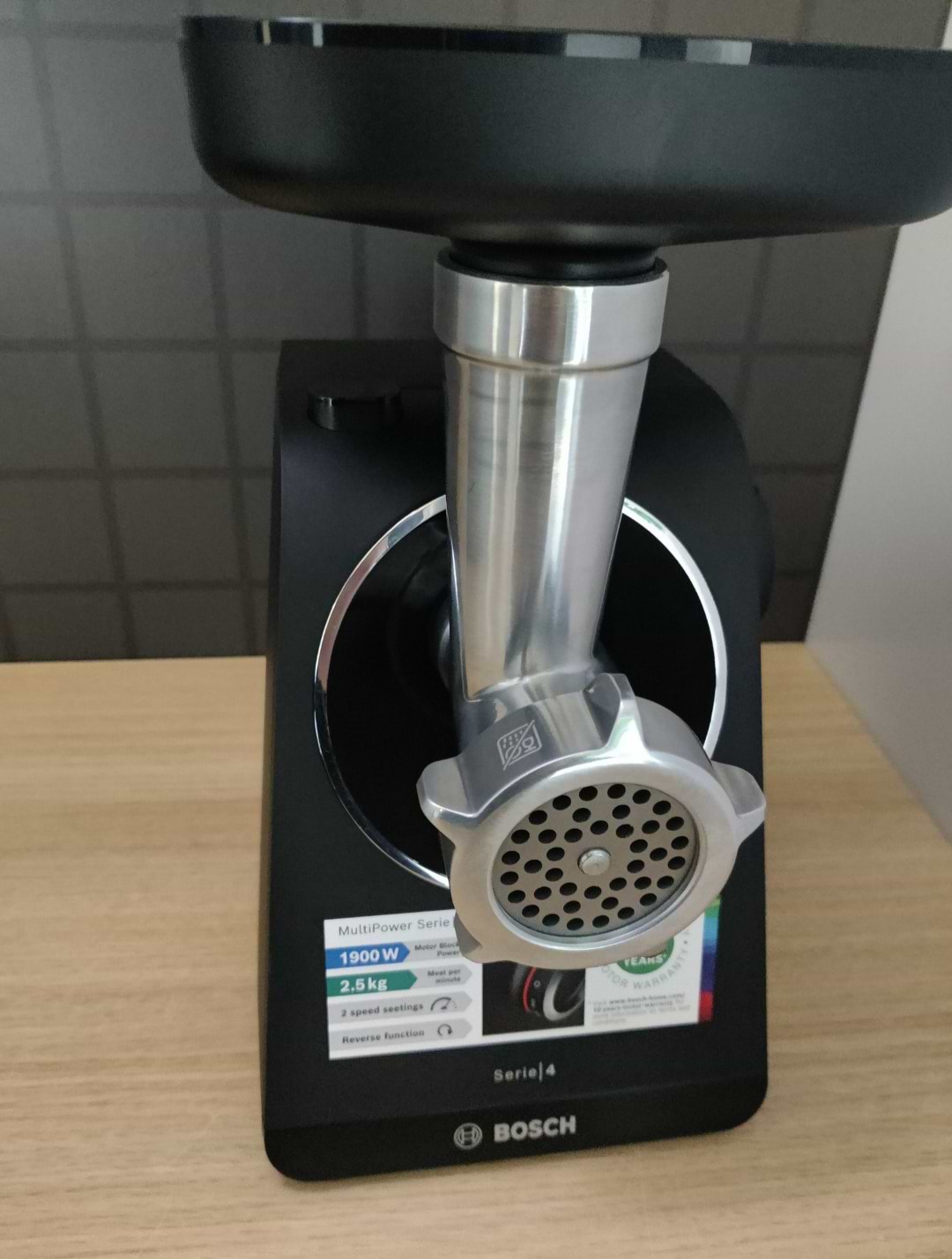 Якісна суперова мясорубка! Працює тихо, має реверс, та безліч насадок. Дуже задоволені покупкою. Рекомендую!
