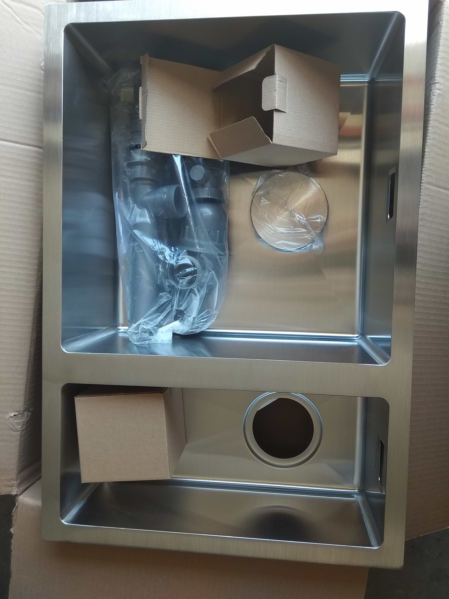 Велика, і дуже зручна мийка, ми брали її у невелике кафе, але для дому вона теж ідеально підходить. Ніколи не думала, що 2 відсіки будуть такими зручними. У більшому миється посуд, а у малому- стікає зайва вода. Якісний метал, легко мити, не дивлячись на форму(думала, що буде важко у кутах відмивати).