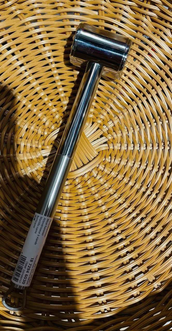 Супер знахідка для господинь. По-перше, виконаний з дуже якісної нержавіючої сталі - Cromargan. По-друге, якісно відбиває мʼясо, при цьому не розриваючи його. Є гачок для підвішування, що дуже зручно.